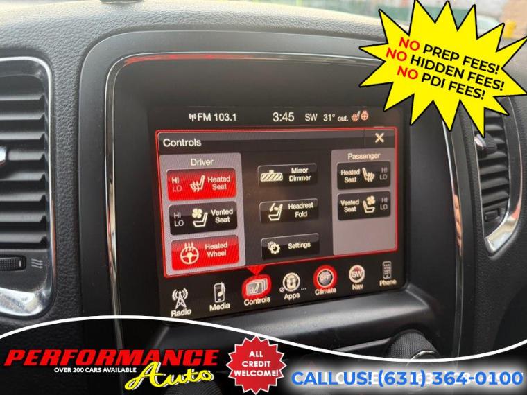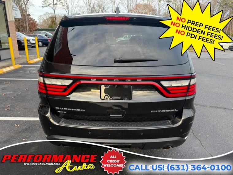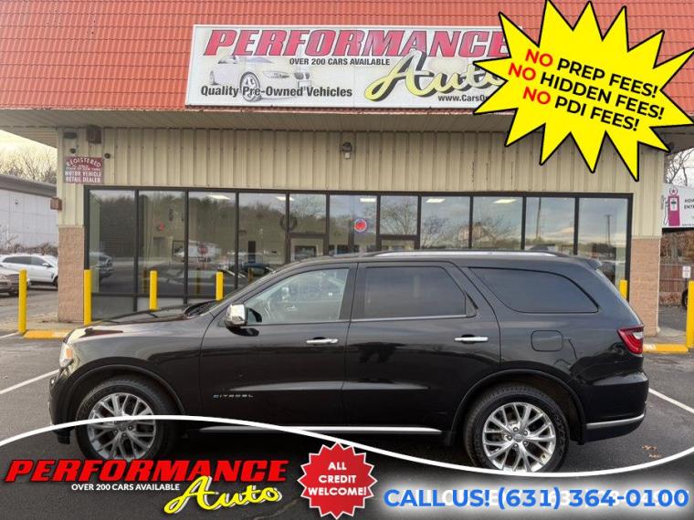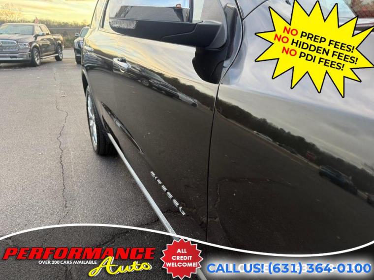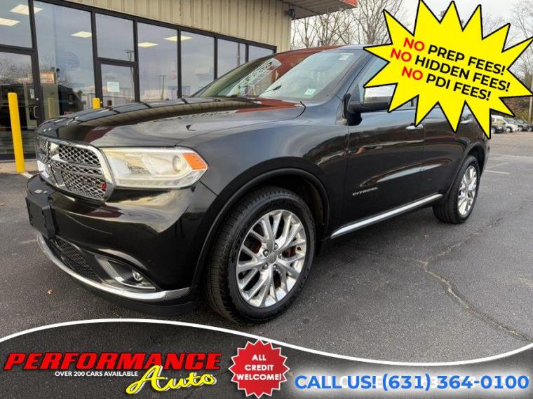 100% Clean Carfax! Citadel! AWD! Loaded! 23J Package! 2nd Row Buckets! 2nd Row Fold and Tumble! Rear Dvd Entertainment! Beats Premium Audio System! Technology Group! Adaptive Cruise! Forward Collision! Blind Spot Monitor! 2nd Row Console and Storage! and MORE! Runs and Drives Great! Come in for a Test Drive! 2015 Dodge Durango Citadel AWD! REMEMBER THE PERFORMANCE AUTO DIFFERENCE - NO PREP FEES! NO HIDDEN FEES! AND OUR PRICES DO NOT NEED TO REFLECT A TRADE OR DOWN PAYMENT! OUR PRICES ARE REAL! DON'T BE SCAMMED BY FINE PRINT! Government fees like Sales Tax, Inspection, DMV Fees and the State Limited $175 Doc processing fee are the ONLY additional fees allowed. Shame on any dealer who advertises a vehicle for a price that you CANNOT buy it for. Just be aware, if you cannot trust a dealer with their advertised price, should you trust them after that??? Shame on third party advertiser websites where consumers go to shop for cars and these sites allow this to happen and then honor these deceptive dealers with badges for "Great Deals" when after you add all their fees in, its NOT a great deal anymore. As per the AG in NY, It is against the law to advertise a vehicle for a price and then have hidden fees or down payments not included in the price. And now please beware of the another scam -- Dealers offering a "promotional price" only if you finance the vehicle with their lenders! This is also illegal and deceptive. You also do NOT need to finance to get our prices! A price should be exactly that - A PRICE! Performance Auto has been selling quality pre-owned automobiles since October 2000. 20-30% of our sales are REPEAT BUSINESS! You will feel no pressure when you enter our facility and meet one of our friendly sales representatives. All of the vehicles that we sell have to be NYS Inspected! As a Licensed New York State Dealer (Facility #7095633), we are required to provide you with a Clear Lien Free Title. As a Certified Plate program dealer, we also have the ability to issue new license plates or transfer your existing plates to your new vehicle. Please be aware of other "dealers" that sell vehicles using "out of state" licenses to avoid inspecting vehicles!