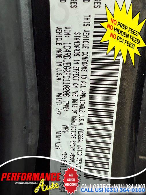 For more information on this 2015 Dodge Durango, please call Performance Auto Inc at (631) 364-0100 or with the contact form on this page. This vehicle's vin number is 1C4RDJEG0FC110206 and is recorded as being in stock at Performance Auto Inc at 4475 Sunrise Highway in Bohemia. See all cars from this dealership.