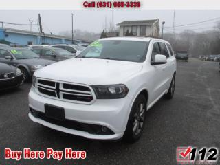 Our great looking 2015 Dodge Durango R/T AWD shown in Bright White blends efficiency with best-in-class capability. Powered by a 5.7 Liter HEMI V8 that generates 360hp tied to a paddle-shifted 8 Speed Automatic transmission. This All Wheel Drive SUV rewards you with nearly 23mpg on the highway with acceleration that makes your pulse race. Shine brightly with projector headlamps and a distinctive grille that exudes attitude. Once inside our incredible R/T, you'll see that the interior is an indulgence for your senses with abundant soft-touch surfaces and bright accents that have been masterfully designed. Complete with heated leather seats featuring memorized adjustments, this seven-passenger SUV is full of great style and technology. Check out the UConnect, touchscreen display, crank up the tunes, or make a phone call with Bluetooth, all while keeping your hands on the heated steering wheel. Dodge offers top safety features like ABS, stability/ traction control, trailer sway control, and an army of airbags. Designed with your family's adventures in mind, this Durango R/T is the perfect formula that you'll experience once you get behind the wheel. Save this Page and Call for Availability. We Know You Will Enjoy Your Test Drive Towards Ownership!