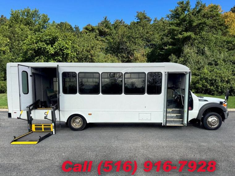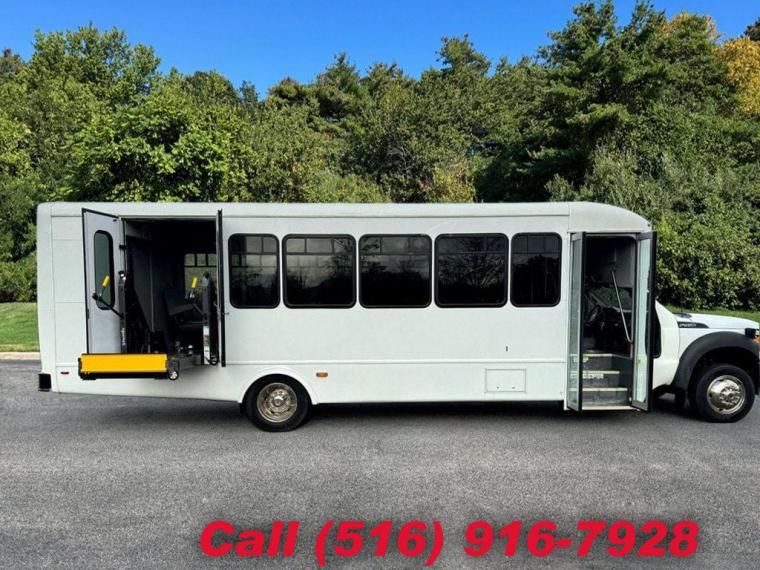 - RECONDITIONED FORD F-550 24 PASSENGER WHEELCHAIR LIFT SHUTTLE BUS with REAR LUGGAGE GREAT SELECTION OF USED BUSES FOR CHURCH, SHUTTLE SERVICE, TOUR, CHARTER, AND GROUP TRAVEL THIS BUS IS IN EXCELLENT CONDITION, BOTH INSIDE AND OUT FORD 6.8L V-10 TRITON GAS ENGINE - FIVE-SPEED AUTOMATIC TRANSMISSION WITH OVERDRIVE SEATING FOR UP TO 24 PASSENGERS WITH UP TO 2 WHEELCHAIRS - REAR AIR CONDITIONING AND HEATER - ANTI-LOCK BRAKES - AM/FM/CD STEREO SYSTEM WITH SPEAKERS THROUGHOUT DELIVERY ARRANGED ANYWHERE IN THE UNITED STATES OR COMPLIMENTARY AIRPORT PICKUP SEE ALL 30 OF OUR SHUTTLE BUSES AND WHEELCHAIR VANS AT AND CALL CHARLIE AT (516) 916-7928 Fully reconditioned F-550 shuttle bus with just 23,000 miles & rear luggage. It was well-maintained and equipped with a powerful 6.8L Ford V10 gas engine and an automatic transmission with overdrive. It delivers a smooth and quiet ride, getting your group to their destination in comfort, thanks to dual air conditioning and heating, as well as a versatile seating arrangement with flip seats that accommodate up to 24 passengers, plus the driver, and can also accommodate up to two wheelchair positions. One-owner, accident-free, clean title vehicle history report. Inspections welcome! We have thoroughly reconditioned this bus as necessary and detailed it to give it an excellent appearance. The bus is in mint condition, has been well cared for, and serviced regularly. As part of our reconditioning process, the bus was fully serviced and inspected, and any necessary repairs were completed to ensure it is fit for any use. The entire bus, both inside and out, looks great and has just been detailed to enhance its appearance. All electrical and mechanical equipment is in proper working order. There are no known problems with this shuttle bus, and it is 100% ready to go. Test drives and inspections are welcome! Clean, comfortable, and perfect for use as a tour and charter shuttle or activity and outing vehicle for church groups, adult day care centers, senior centers, shuttle operators, teams, or worker transport. This F-550 rides smoothly and handles well. The body will hold up well for years to come. The motor is quiet and powerful, and the automatic transmission shifts smoothly. All mechanical functions work correctly. The high-capacity A/C (front and rear) blows hard and cold, while the heat works well. This bus was well-built, as you can see from the pictures. The interior is in excellent shape, having been cleaned regularly. The cloth seats, equipped with seatbelts and armrests, provide passengers with complete comfort. FEATURES & SPECIFICATIONS: Ford F-550 Super Duty Chassis with Dual Rear Wheels - Ford 6.8L V-10 Triton Gas Engine - 5 Speed Automatic Transmission With Overdrive - Reclining Cloth Driver's Seat - Driver's Step - Electric Passenger Door - Rear Luggage Compartment - Flip Seat Equipped For Versatile Seating Arrangements - 24 Passenger Seats Plus the Driver with Seat Belts - Padded Interior - Up To 2 Wheelchair Positions - Vanity Panels - Chrome Wheel Simulators - Tinted T-Slider Coach Windows - Tilt Wheel - Cruise Control - BraunAbility Wheelchair Lift - Wheelchair Safety Interlock - Advanced High Idle Control - Stainless Steel Entrance Rails - Rear View Backup Camera - Q'straint Automatic Wheelchair Retractors - Heated Mirrors - Interior Overhead Lighting - Overhead Handrails - Auxiliary Exterior Entry Lighting - Front & Rear Air Conditioning - Rear Heater - Rear Window - AM/FM/CD/Navigation - Mud Flaps - & DOT Equipment Visit us at 5000 Brush Hollow Road, Westbury, New York 11590. We offer delivery assistance to the USA. Feel free to call Charlie at (516) 916-7928 to discuss your needs. - - - Contact Charlie Kaufman at (516) 916-7928 or majorvehicles@gmail.com for more information. - -