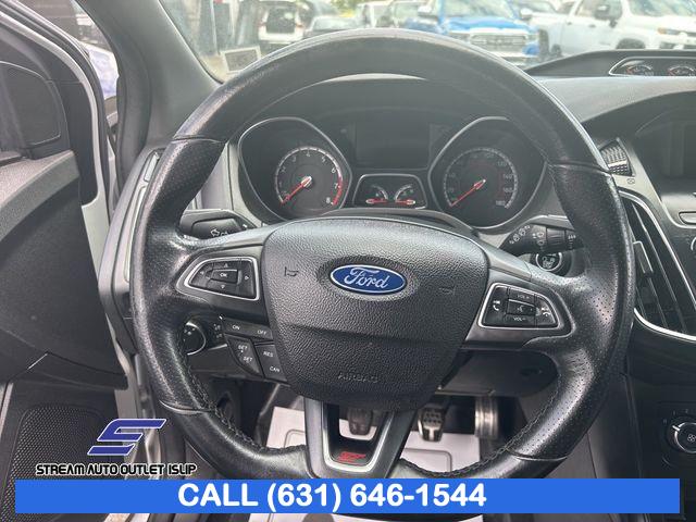 Equipment Group 400A, 6 Speakers, AM/FM radio, AM/FM/CD/MP3 w/6 Speakers, CD player, MP3 decoder, Radio data system, Air Conditioning, Rear window defroster, Power steering, Power windows, Remote keyless entry, Steering wheel mounted audio controls, SYNC, Four wheel independent suspension, Traction control, 4-Wheel Disc Brakes, ABS brakes, Dual front impact airbags, Dual front side impact airbags, Front anti-roll bar, Knee airbag, Low tire pressure warning, Occupant sensing airbag, Overhead airbag, Rear anti-roll bar, Brake assist, Electronic Stability Control, Exterior Parking Camera Rear, Delay-off headlights, Front fog lights, Fully automatic headlights, Panic alarm, Security system, Speed control, Bumpers: body-color, Front License Plate Bracket, Power door mirrors, Spoiler, Turn signal indicator mirrors, Cloth Sport Seats w/ST Logo, Compass, Driver door bin, Driver vanity mirror, Front reading lights, Illuminated entry, Leather steering wheel, Outside temperature display, Passenger vanity mirror, Tachometer, Telescoping steering wheel, Tilt steering wheel, Trip computer, Front Bucket Seats, Front Center Armrest, Split folding rear seat, Passenger door bin, Alloy wheels, Wheels: 18" Rado Grey Painted Aluminum, Rear window wiper, Variably intermittent wipers