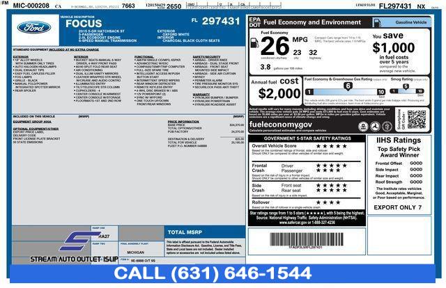 For more information on this 2015 Ford Focus, please call Stream Auto Outlet Islip at (631) 646-1544 or with the contact form on this page. This vehicle's vin number is 1FADP3L9XFL297431 and is recorded as being in stock at Stream Auto Outlet Islip at 2232 Sunrise Hwy in Islip. See all cars from this dealership.
