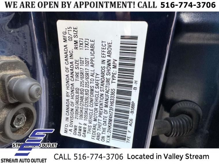 For more information on this 2015 Honda CR-V, please call Stream Auto Outlet Valley Stream at (516) 774-3706 or with the contact form on this page. This vehicle's vin number is 2HKRM4H73FH633365 and is recorded as being in stock at Stream Auto Outlet Valley Stream at 324 W Merrick Rd in Valley Stream. See all cars from this dealership.
