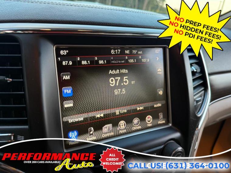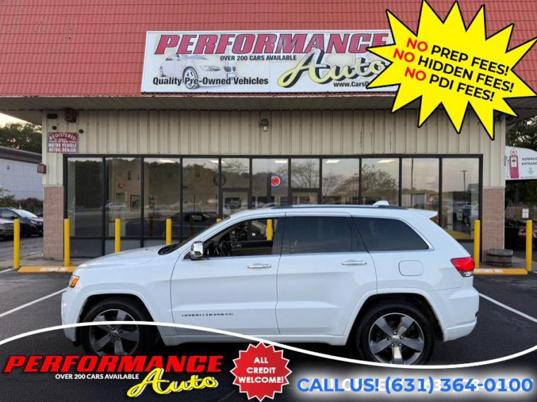 Overland! 2015 Jeep Grand Cherokee Overland 4x4! Loaded! Advanced Technology Group! 5.7L Hemi Engine! Uconnect 8.4! Quadra Drive II ! 20 Inch Wheels! Air Suspension! and MORE! Runs and Drives Great! Come in for a Test Drive! REMEMBER THE PERFORMANCE AUTO DIFFERENCE - NO PREP FEES! NO HIDDEN FEES! AND OUR PRICES DO NOT NEED TO REFLECT A TRADE OR DOWN PAYMENT! OUR PRICES ARE REAL! DON'T BE SCAMMED BY FINE PRINT! Government fees like Sales Tax, Inspection, DMV Fees and the State Limited $175 Doc processing fee are the ONLY additional fees allowed. Shame on any dealer who advertises a vehicle for a price that you CANNOT buy it for. Just be aware, if you cannot trust a dealer with their advertised price, should you trust them after that??? Shame on third party advertiser websites where consumers go to shop for cars and these sites allow this to happen and then honor these deceptive dealers with badges for "Great Deals" when after you add all their fees in, its NOT a great deal anymore. As per the AG in NY, It is against the law to advertise a vehicle for a price and then have hidden fees or down payments not included in the price. And now please beware of the another scam -- Dealers offering a "promotional price" only if you finance the vehicle with their lenders! This is also illegal and deceptive. You also do NOT need to finance to get our prices! A price should be exactly that - A PRICE! Performance Auto has been selling quality pre-owned automobiles since October 2000. 20-30% of our sales are REPEAT BUSINESS! You will feel no pressure when you enter our facility and meet one of our friendly sales representatives. All of the vehicles that we sell have to be NYS Inspected! As a Licensed New York State Dealer (Facility #7095633), we are required to provide you with a Clear Lien Free Title. As a Certified Plate program dealer, we also have the ability to issue new license plates or transfer your existing plates to your new vehicle. Please be aware of other "dealers" that sell vehicles using "out of state" licenses to avoid inspecting vehicles!