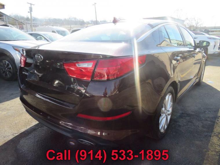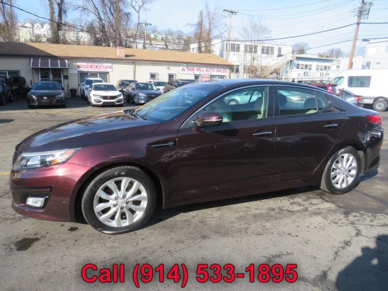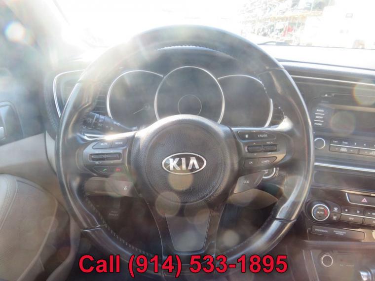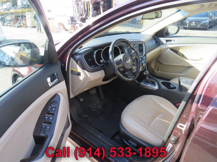 This 2015 Kia Optima 4dr 4dr Sedan EX features a 2.4L 4 CYLINDER 4cyl Gasoline engine. It is equipped with a 6 Speed Automatic transmission. The vehicle is Not Specified with a Not Specified interior. It is offered As-Is, extended warranty is available. - Air Conditioning, Climate Control, Dual Zone Climate Control, Cruise Control, Power Steering, Power Mirrors, Leather Steering Wheel, Power Drivers Seat, Memory Seat Position, Wood Trim, Clock, Tachometer, Telescoping Steering Wheel, Steering Wheel Radio Controls, Driver Airbag, Passenger Airbag, Side Airbags, Security System, Rear Defogger, Fog Lights, Intermittent Wipers, AM/FM, CD Player, Aux. Audio Input, Bluetooth, Carpeted Floor Mats, Center Arm Rest, Child Proof Door Locks, Heated Mirrors, Overhead Console, Premium Sound, Remote Fuel Door, Remote Trunk Lid, Roll Stability Control, Side Curtain Airbags, Tire Pressure Monitor, Vanity Mirrors - Contact Michael Maratto at (914) 533-1895 for more information. -