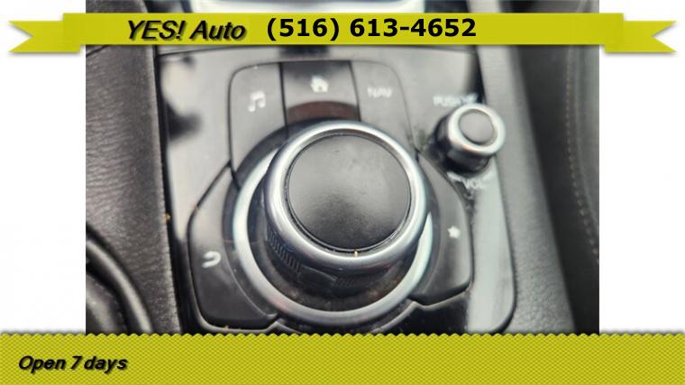 Air filtration, Front air conditioning, Front air conditioning zones: single, Rear vents: second row, Airbag deactivation: occupant sensing passenger, Front airbags: dual, Side airbags: front, Side curtain airbags: front / rear, Antenna type: mast, Auxiliary audio input: Bluetooth / iPod/iPhone / jack / USB, Internet radio app: AHA / Pandora / Stitcher, Radio: AM/FM / HD radio / touch screen display / voice operated, Radio data system, Total speakers: 6, ABS: 4-wheel, Braking assist, Electronic brakeforce distribution, Front brake type: ventilated disc, Power brakes, Rear brake type: disc, Armrests: rear center with cupholders, Cargo area floor mat, Door trim: cloth, Floor mat material: carpet, Floor material: carpet, Floor mats: front / rear, Interior accents: metallic-tone, Parking brake trim: leather, Shift knob trim: leather, Steering wheel trim: leather, Assist handle: front / rear, Cargo area light, Cargo cover: hard, Center console: front console with armrest and storage, Cruise control, Cupholders: front / rear, Multi-function remote: panic alarm / proximity entry system / trunk release, One-touch windows: 1, Power outlet(s): two 12V, Power steering: variable/speed-proportional, Power windows: lockout button, Push-button start, Reading lights: front / rear, Rearview mirror: manual day/night, Steering wheel: tilt and telescopic, Steering wheel mounted controls: audio / cruise control / phone, Storage: accessory hook / door pockets / front seatback, Touch-sensitive controls, Vanity mirrors: dual, Door handle color: body-color, Exhaust: dual tip, Exhaust tip color: metallic, Front bumper color: body-color, Grille color: silver, Mirror color: body-color, Rear bumper color: body-color, Rear spoiler: roofline, Rear spoiler color: body-color, Rear trunk/liftgate: liftgate, Window trim: black, Infotainment: MAZDA CONNECT, Infotainment screen size: 7 in., Clock, Digital odometer, Fuel economy display: MPG / range, Gauge: tachometer, Multi-function display, Trip odometer, Warnings and reminders: coolant temperature warning / lamp failure / low battery / low fuel level / low oil pressure / maintenance due, Daytime running lights, Front fog lights, Headlights: halogen, Side mirror adjustments: manual folding / power, Side mirrors: heated / integrated turn signals, Alternator: 100 amps, Blind spot safety: sensor/alert, Camera system: rearview, Child safety door locks, Child seat anchors: LATCH system, Cross traffic alert: rear, Impact absorbing seats: dual front, Impact sensor: door unlock / post-collision safety system, Rearview monitor: in dash, Safety brake pedal system, Front seatbelts: 3-point, Rear seatbelts: 3-point, Seatbelt force limiters: front, Seatbelt pretensioners: front, Seatbelt warning sensor: front, Driver seat manual adjustments: 6 / height / reclining, Front headrests: 2 / adjustable, Front seat type: bucket, Rear headrests: 3 / adjustable, Rear seat folding: one-touch fold flat / split, Rear seat type: 60-40 split bench, Upholstery: premium cloth, Anti-theft system: alarm / vehicle immobilizer, Power door locks: auto-locking, Hill holder control, Stability control, Traction control, Front shock type: twin-tube gas, Front spring type: coil, Front stabilizer bar, Front struts: MacPherson, Front suspension classification: independent, Front suspension type: lower control arms, Rear shock type: twin-tube gas, Rear spring type: coil, Rear stabilizer bar, Rear suspension classification: independent, Rear suspension type: multi-link, Electronic messaging assistance: with read function, Wireless data link: Bluetooth, Spare tire mount location: inside, Spare tire size: temporary, Spare wheel type: steel, Tire Pressure Monitoring System, Wheels: aluminum alloy, Front wipers: variable intermittent, Liftgate window: fixed, Power windows, Rear wiper: intermittent / with washer, Window defogger: rear