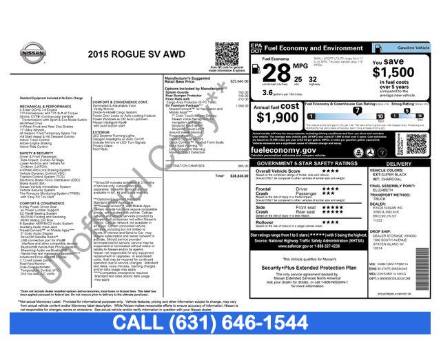 2015 Nissan Rogue Super Black * NYS INSPECTION INCLUDED *, * FULL INTERIOR / EXTERIOR DETAIL *, * BLUETOOTH *, * LIMITED NYS LEMON LAW WARRANTY INCLUDED *, *FRESH OIL CHANGE *, * 150 MULTI POINT INSPECTION *, AWD. 25/32 City/Highway MPG