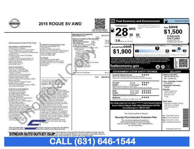 For more information on this 2015 Nissan Rogue, please call Stream Auto Outlet Islip at (631) 646-1544 or with the contact form on this page. This vehicle's vin number is KNMAT2MV1FP580114 and is recorded as being in stock at Stream Auto Outlet Islip at 2232 Sunrise Hwy in Islip. See all cars from this dealership.