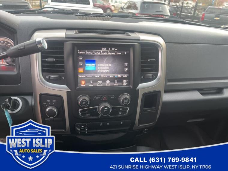 ABS, 4-Wheel Disc Brakes, 8 Cylinder Engine, A/C, Adjustable Steering Wheel, AM/FM Stereo, Automatic Headlights, Auxiliary Audio Input, Brake Assist, Child Safety Locks, Cloth Seats, Cruise Control, Driver Air Bag, Stability Control, Four Wheel Drive, Floor Mats, Gasoline Fuel, Heated Mirrors, Intermittent Wipers, Keyless Entry, MP3 Capability, Passenger Air Bag, Passenger Air Bag On/Off Switch, Passenger Air Bag Sensor, Passenger Vanity Mirror, Power Door Locks, Power Mirror(s), Power Steering, Power Windows, Privacy Glass, Rear Bench Seat, Rear Head Air Bag, Requires Subscription, Satellite Radio, Front Side Air Bag, Front Head Air Bag, Tire Pressure Monitor, Traction Control, Tow Hitch, Trip Computer, Variable Speed Intermittent Wipers, Immobilizer, Bluetooth Connection, Auto On/Off Reflector Halogen Headlamps w/Delay-Off, Black Exterior Mirrors, Black Side Windows Trim and Black Front Windshield Trim, Cargo Lamp w/High Mount Stop Light, Center Hub, Chrome Door Handles, Chrome Front Bumper, Chrome Grille, Chrome Rear Step Bumper, Deep Tinted Glass, Exterior Mirrors w/Heating Element, Firestone Brand Tires, Front License Plate Bracket, Full-Size Spare Tire Stored Underbody w/Crankdown, Fully Galvanized Steel Panels, Hemi Badge, Non-Metallic Paint, Power Rear Window, Power Side Mirrors w/Manual Folding, Rear Wheel Spats, Regular Box Style, Steel Spare Wheel, Tailgate Rear Cargo Access, Tires: LT275/70R18E BSW AS, Variable Intermittent Wipers, Vendor Painted Cargo Box Tracking, Wheels: 18" x 8.0" Steel Chrome Clad, 2 12V DC Power Outlets, 40/20/40 Split Bench Seat, Analog Appearance, Cab Mounted Cargo Lights, Cargo Area Concealed Storage, Cloth 40/20/40 Bench Seat, Compass, Cruise Control w/Steering Wheel Controls, Day-Night Rearview Mirror, Delayed Accessory Power, Driver Information Center, Driver Seat, Electronically Controlled Throttle, Fade-To-Off Interior Lighting, Front Map Lights, Full Carpet Floor Covering -inc: Carpet Front And Rear Floor Mats, Full Cloth Headliner, Full Folding Bench Front Facing Fold-Up Cushion Rear Seat, Gauges -inc: Speedometer, Odometer, Voltmeter, Oil Pressure, Engine Coolant Temp, Tachometer, Oil Temperature, Transmission Fluid Temp, Engine Hour Meter, Trip Odometer and Trip Computer, Glove Box, HVAC -inc: Underseat Ducts and Console Ducts, Instrument Panel Bin, Dashboard Storage, Driver / Passenger And Rear Door Bins and 2nd Row Underseat Storage, Integrated Voice Command w/Bluetooth, Interior Trim -inc: Metal-Look Instrument Panel Insert, Metal-Look Door Panel Insert and Chrome/Metal-Look Interior Accents, Locking Tailgate, Manual Adjustable Front Head Restraints and Manual Adjustable Rear Head Restraints, Manual Air Conditioning, Manual Tilt Steering Column, Mini Overhead Console and 2 12V DC Power Outlets, Outside Temp Gauge, Passenger Seat, Passenger Visor Vanity Mirror, Power 1st Row Windows w/Driver And Passenger 1-Touch Up/Down, Power Door Locks w/Autolock Feature, Power Rear Windows, Rear Center Armrest, Rear Cupholder, Redundant Digital Speedometer, Remote Keyless Entry w/Integrated Key Transmitter, Illuminated Entry and Panic Button, Sentry Key Immobilizer, Trip Computer, Urethane Gear Shifter Material, Valet Function, Vinyl Door Trim Insert, 160 Amp Alternator, 2250# Maximum Payload, 3.73 Rear Axle Ratio, 31 Gal. Fuel Tank, 4-Wheel Disc Brakes w/4-Wheel ABS, Front And Rear Vented Discs, Brake Assist and Hill Hold Control, 50 State Emissions, 730CCA Maintenance-Free Battery w/Run Down Protection, Auto Locking Hubs, Class V Towing Equipment -inc: Hitch, Brake Controller and Trailer Sway Control, Electronic Transfer Case, Engine: 5.7L V8 HEMI VVT, Front Anti-Roll Bar, Front Bumper Sight Shields, GVWR: 9, 000 lbs, HD Gas-Pressurized Shock Absorbers, Hydraulic Power-Assist Steering, Multi-Link Front Suspension w/Coil Springs, Next Generation Engine Controller, Part-Time Four-Wheel Drive, Single Stainless Steel Exhaust, Solid Axle Rear Suspension w/Coil Springs, Tip Start, Trailer Wiring Harness, Transmission Oil Cooler, Transmission w/Driver Selectable Mode, Transmission: 6-Speed Automatic (66RFE), ABS And Driveline Traction Control, Airbag Occupancy Sensor, Curtain 1st And 2nd Row Airbags, Dual Stage Driver And Passenger Front Airbags, Dual Stage Driver And Passenger Seat-Mounted Side Airbags, Electronic Stability Control (ESC), Outboard Front Lap And Shoulder Safety Belts -inc: Rear Center 3 Point, Height Adjusters and Pretensioners, Rear Child Safety Locks, Side Impact Beams, Tire Specific Low Tire Pressure Warning