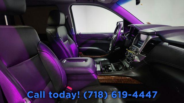 Navigation System, Magnetic Ride Control Suspension Package, 10 Speakers, AM/FM radio: SiriusXM, Bose Centerpoint Premium 10-Speaker Surround Sound, CD player, Premium audio system: Chevrolet MyLink, Radio: Chevrolet MyLink w/Navigation/AM/FM Stereo, Single-Slot CD/MP3 Player, SiriusXM Satellite Radio, Air Conditioning, Automatic temperature control, Front dual zone A/C, Rear air conditioning, Rear window defroster, 5 12-Volt Auxiliary Power Outlets, 6-Way Power Front Passenger Seat Adjuster, Hands Free Power Liftgate, Heated 2nd Row Seats, Memory seat, Memory Settings, Pedal memory, Power driver seat, Power steering, Power windows, Power-Adjustable Accelerator & Brake Pedals, Remote Keyless Entry, Remote keyless entry, Steering wheel memory, Steering wheel mounted audio controls, Universal Home Remote, Adaptive suspension, Power Tilt & Telescoping Steering Column, Speed-sensing steering, Traction control, 4-Wheel Antilock Disc Brakes, 4-Wheel Disc Brakes, ABS brakes, Dual front impact airbags, Dual front side impact airbags, Emergency communication system: OnStar, Front anti-roll bar, Front wheel independent suspension, Low tire pressure warning, Occupant sensing airbag, Overhead airbag, Passive Entry System, Push Button Keyless Start, Rear anti-roll bar, Power Liftgate, Brake assist, Electronic Stability Control, Lane Departure Warning System, Exterior Parking Camera Rear, Front & Rear Parking Assist, Auto High-beam Headlights, Delay-off headlights, Fog Lamps, Front fog lights, Fully automatic headlights, High-Intensity Discharge Headlights, IntelliBeam Headlamps, Driver Inboard & Front Passenger Airbags, Panic alarm, Safety Alert Driver Seat, Security system, Unauthorized Entry Electrical Theft Deterrent Sys., Electronic Cruise Control w/Set & Resume Speed, Speed control, 2-Speed Active Electronic AutoTrac Transfer Case, Auto-dimming door mirrors, Black Assist Steps w/Chrome Accent Strip, Bodyside moldings, Bumpers: body-color, Heated door mirrors, Power door mirrors, Power-Folding Heated Outside Mirrors, Roof rack: rails only, Spoiler, Turn signal indicator mirrors, 1st & 2nd Row Color-Keyed Carpeted Floor Mats, Adjustable pedals, Apple CarPlay, Auto-Dimming Inside Rear-View Mirror, Auto-dimming Rear-View mirror, Color-Keyed Carpeting Floor Covering, Compass, Driver door bin, Driver vanity mirror, Enhanced Driver Instrument Information Display, Floor Console, Forward Collision Alert Sensor Indicator, Front reading lights, Garage door transmitter, Heated Leather Wrapped Steering Wheel, Heated steering wheel, Illuminated entry, Lane Keep Assist, OnStar Basic Plan For 5 Years, Outside temperature display, Overhead console, Passenger vanity mirror, Rear Cross-Traffic Alert, Rear reading lights, Side Blind Zone Alert w/Lane Change Alert, Tachometer, Telescoping steering wheel, Tilt steering wheel, Trip computer, Voltmeter, Wireless Charging, 3rd Row 60/40 Power Fold Split-Bench, 3rd row seats: split-bench, Front Bucket Seats, Front Center Armrest, Front Heated Reclining Bucket Seats, Heated & Cooled Driver & Front Passenger Seats, Heated front seats, Heated rear seats, Perforated Leather-Appointed Seat Trim, Power passenger seat, Power Release 2nd Row Bucket Seats, Split folding rear seat, Ventilated front seats, Passenger door bin, Roof-Mounted Luggage Rack Side Rails, Integrated Trailer Brake Controller, Alloy wheels, Wheels: 20" x 9" Polished-Aluminum, Rain sensing wipers, Rear window wiper, Variably intermittent wipers, 3.08 Rear Axle Ratio
