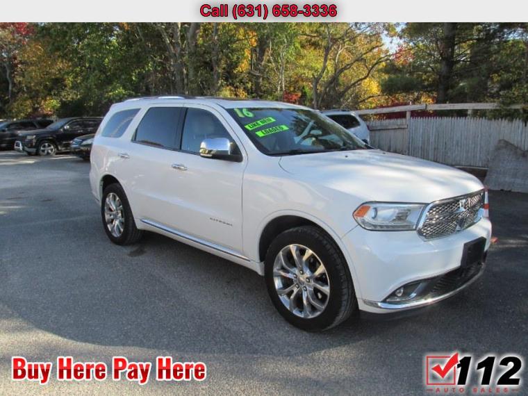 For more information on this 2016 Dodge Durango, please call 112 Auto Sales at (631) 658-3336 or with the contact form on this page. This vehicle's vin number is 1C4RDJEG0GC323495 and is recorded as being in stock at 112 Auto Sales at 561 Medford Ave in Patchogue. See all cars from this dealership.