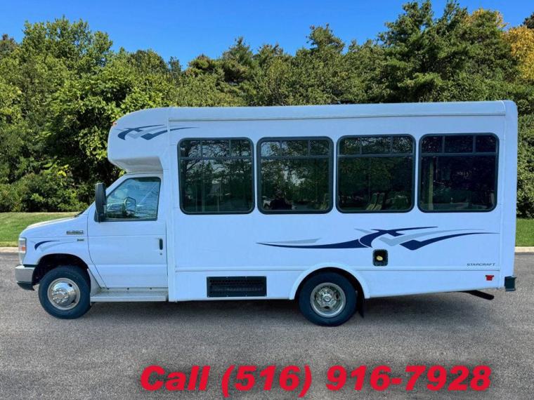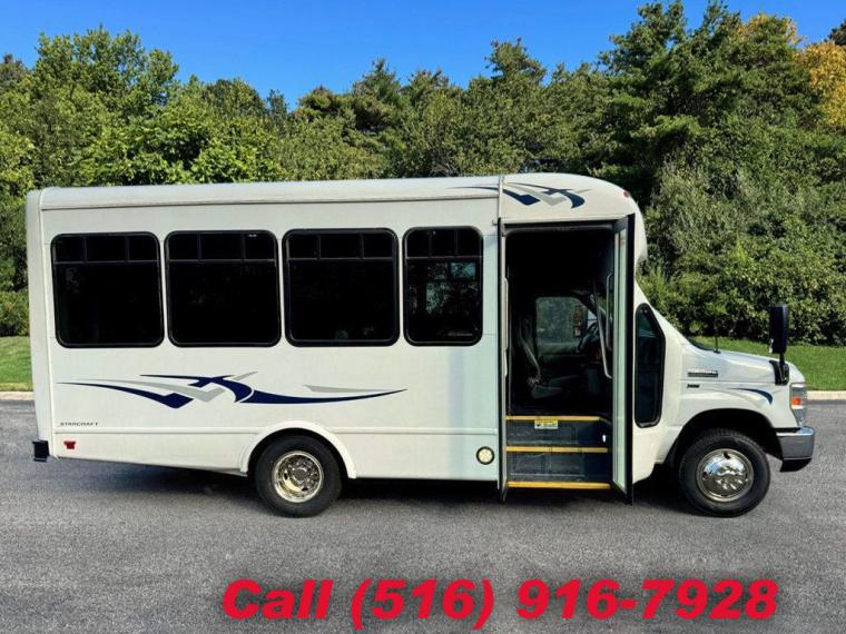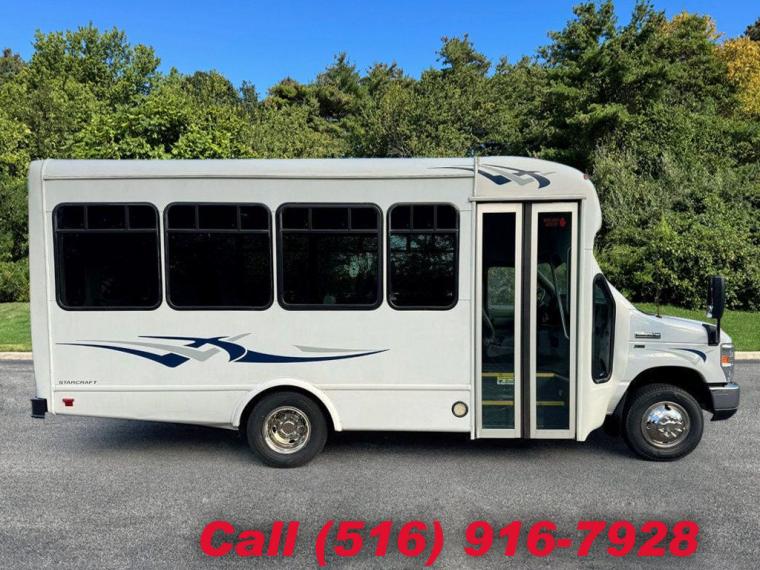 - RECONDITIONED 2016 FORD E-350 15 SEAT STARCRAFT SHUTTLE BUS GREAT SELECTION OF 30 USED BUSES FOR CHURCH, SHUTTLE SERVICE, ADULT RECREATION, TOUR, CHARTER, GROUP, AND HANDICAP TRANSPORTATION THIS BUS IS IN EXCELLENT CONDITION, BOTH INSIDE AND OUT FORD 5.4L V-8 TRITON GAS ENGINE - SIX-SPEED AUTOMATIC TRANSMISSION WITH OVERDRIVE HIGH CAPACITY AIR CONDITIONING FRONT & REAR - ANTI-LOCK BRAKES - REAR DOOR - AM/FM/CD STEREO WITH SPEAKERS THROUGHOUT DELIVERY CAN BE ARRANGED ANYWHERE IN THE UNITED STATES OR A COMPLIMENTARY AIRPORT PICKUP SEE ALL OF OUR SHUTTLE BUSES AND WHEELCHAIR VANS AT getanybus.com AND CALL US AT (516) 916-7928 This 43,000-mile, fully serviced and reconditioned Ford Starcraft E-350 Non-CDL shuttle bus has been fleet-maintained and is powered by a dependable 5.4L Ford V-8 engine paired with a 6-speed automatic transmission featuring overdrive. Built for reliability and comfort, it delivers a smooth, quiet ride, accommodating 14 passengers plus the driver. Dual A/C and heating systems ensure passenger comfort in any season, while durable vinyl seating, complete with seatbelts, armrests, and hand grips, provides both safety and convenience. It is a one-owner, accident-free vehicle with a clean title. The bus has been thoroughly reconditioned, detailed, and touched up for excellent presentation. It was regularly serviced, passed inspections, and received any necessary repairs to keep it in peak condition. The cabin shows minimal wear and looks nearly new, while the freshly detailed exterior enhances its curb appeal. All electrical and mechanical components are fully operational, making this bus 100% ready for service. Clean, comfortable, and versatile, this E-350 is ideal for church groups, senior centers, adult day care, shuttle services, clubs, and teams. The powerful yet quiet V-8 engine, smooth-shifting transmission, and high-capacity dual A/C system ensure reliable performance. This bus was built with quality in mind and will serve reliably for years to come. Features & Specifications: Ford E-350 Dual Rear Wheel Super-Duty Chassis Low Mileage Ford 5.4L Gas Engine with 6-Speed Automatic & Overdrive Reclining Driver's Seat with Armrest & Vinyl Upholstery Driver Entrance Step & Electric Passenger Door 14 Passenger Seats with Hand Grips and Armrests, plus the Driver with Seat Belts Rear Door with Windows Rear Bumper with Step - Rear Cargo Area With Flip Seat Advanced High Idle Control & Auxiliary Exterior Lighting Upgraded Interior with Overhead Lighting & Vanity Panels Chrome Wheel Simulators & Tinted T-Slider Coach Windows Front & High-Capacity Rear A/C, plus Rear Heat AM/FM/CD/Bluetooth Stereo System with Speakers Throughout Tilt Wheel, Mud Flaps, & DOT Safety Equipment We offer delivery assistance throughout the USA. Please feel free to call us at (516) 916-7928 for additional information. We hope you are our next satisfied buyer. - - - Contact Charlie Kaufman at (516) 916-7928 or majorvehicles@gmail.com for more information. - -