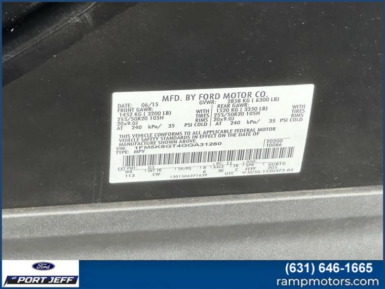 Sport trim. Heated Leather Seats, Third Row Seat, Moonroof, Rear Air, 4x4, Aluminum Wheels, Turbo Charged Engine, ENGINE: 3.5L V6 ECOBOOST, ADAPTIVE CRUISE CONTROL & FWD COLLISI... TWIN PANEL MOONROOF, EQUIPMENT GROUP 401A, Hitch. <br /<br /KEY FEATURES INCLUDE<br /Leather Seats, Third Row Seat, 4x4, Rear Air, Heated Driver Seat, Back-Up Camera, Premium Sound System, Satellite Radio, Onboard Communications System, Trailer Hitch Rear Spoiler, Keyless Entry, Privacy Glass, Child Safety Locks. Ford Sport with Shadow Black exterior and Ebony Black w/ Red Accent Stitching interior features a V6 Cylinder Engine with 365 HP at 5500 RPM*. <br /<br /OPTION PACKAGES<br /EQUIPMENT GROUP 401A BLIS Plus Inflatable Rear Safety Belts Package, BLIS (Blind Spot Information System), Cross Traffic Alert, Inflatable Rear Seatbelts, 2nd row outboard seating positions, Auto-Dimming Drivers Sideview Mirror, Power Adjustable Pedals, Universal Garage Door Opener, Dual 2nd Row Smart Charging USB, Ambient Lighting, Hands-Free Liftgate, Power Tilt/Telescoping Steering Wheel, Front 180 Degree Camera w/Washer, Heated Steering Wheel, Power Converter 110V Outlet, Voice Activated Navigation System, in-dash screen, SD card for map and POI storage and integrated SiriusXM Traffic and Travel Link, Note: SiriusXM Traffic and Travel Link includes a, SiriusXM Traffic and Travel Link is not available in Alaska and Hawaii, Note: SiriusXM audio and data, TWIN PANEL MOONROOF, ADAPTIVE CRUISE CONTROL & FWD COLLISION WARNING brake support, ENGINE: 3.5L V6 ECOBOOST (STD). <br /<br /EXPERTS ARE SAYING<br /Materials are attractive and luxurious, with a soft-touch dashboard and precise-feeling controls. The front seats welcome a wide variety of body types, and the cabin is particularly quiet as well. -Edmunds.com. <br /<br /Horsepower calculations based on trim engine configuration. Please confirm the accuracy of the included equipment by calling us prior to purchase. <br /