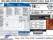 BEGIN THE SIMPLE PROCESS. PERSONALIZE THE PAYMENTS THAT FIT YOUR BUDGET, ADD YOUR TRADE-IN INFORMATION, APPLY FOR YOUR AUTO LOAN, SCHEDULE A PICKUP OR DELIVERY DATE. (HOME DELIVERY AVAILABLE*). EVERY VEHICLE HAS BEEN PRICED BELOW COST IN ORDER TO TURN INVENTORY QUICKLY AND PASS ON THE SAVINGS TO YOU! EACH VEHICLE COMES WITH A FREE LIMITED POWERTRAIN WARRANTY AND FREE CARFAX REPORT! WITH THESE SAVINGS THESE VEHICLES WONT LAST. CALL TO GET YOUR GREAT DEAL TODAY! (516) 774-3706.
