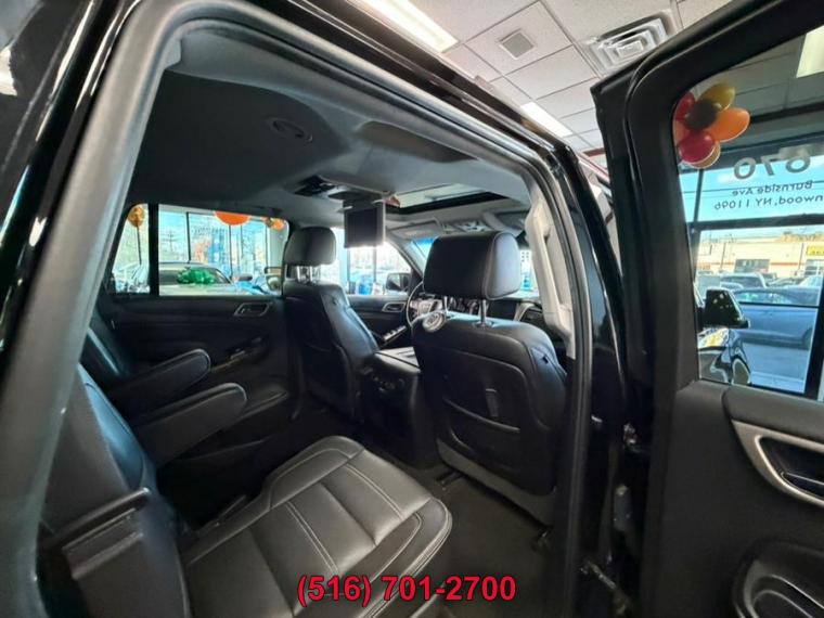 ABS, 4-Wheel Disc Brakes, 8 Cylinder Engine, 8-Speed A/T, A/C, A/T, Active Suspension, 3rd Row Seat, Adjustable Pedals, Adjustable Steering Wheel, Security System, AM/FM Stereo, Automatic Headlights, Automatic Highbeams, Auxiliary Audio Input, Back-Up Camera, Blind Spot Monitor, Brake Assist, Bucket Seats, CD Player, Climate Control, Cooled Front Seat(s), Cross-Traffic Alert, Cruise Control, Daytime Running Lights, Driver Air Bag, Driver Adjustable Lumbar, Multi-Zone A/C, Auto-Dimming Rearview Mirror, Stability Control, Fog Lamps, Four Wheel Drive, Front Collision Warning, Floor Mats, Conventional Spare Tire, Gasoline Fuel, Hands-Free Liftgate, HD Radio, Heated Front Seat(s), Heated Mirrors, Heated Rear Seat(s), Heated Steering Wheel, HID headlights, Integrated Turn Signal Mirrors, Intermittent Wipers, Keyless Entry, Keyless Start, Lane Departure Warning, Lane Keeping Assist, Leather Seats, Leather Steering Wheel, Locking/Limited Slip Differential, Luggage Rack, Mirror Memory, MP3 Capability, Navigation from Telematics, Navigation System, Telematics, Pass-Through Rear Seat, Passenger Air Bag, Passenger Air Bag Sensor, Passenger Adjustable Lumbar, Power Door Locks, Power Mirror(s), Power Driver Seat, Power Folding Mirrors, Power Liftgate, Power Passenger Seat, Power Steering, Power Windows, Premium Sound System, Privacy Glass, Rain Sensing Wipers, Rear A/C, Rear Defrost, Rear Head Air Bag, Rear Parking Aid, Remote Engine Start, Remote Trunk Release, Requires Subscription, Running Boards/Side Steps, Satellite Radio, Seat Memory, Front Side Air Bag, Front Head Air Bag, Smart Device Integration, Steering Wheel Audio Controls, Tire Pressure Monitor, Tires - Front Performance, Tires - Rear Performance, Traction Control, Tow Hitch, Transmission Overdrive Switch, Universal Garage Door Opener, Variable Speed Intermittent Wipers, WiFi Hotspot, Bluetooth Connection, Assist steps, Black with chrome strip, Fog lamps, Glass, deep-tinted, Headlamps, IntelliBeam, automatic high beam on/off, Headlamps, projector beam, high intensity discharge, Liftgate, power, hands free, Luggage rack side rails, roof-mounted, Black, Mirrors, outside heated power-adjustable, power-folding and driver-side auto-dimming, body-color with integrated turn signal indicators and ground illumination., Moldings, bright bodyside, Tire carrier, lockable outside spare winch-type mounted under frame at rear, Tire, spare P265/70R17 all-season, blackwall, Tires, P275/55R20 all-season, blackwall, Wheel, full-size spare 17" (43.2 cm) steel, Wheels, 20" x 9" (50.8 cm x 22.9 cm) ultra bright machined aluminum, Windshield style, acoustic laminated glass, Windshield, solar-absorbing, Wiper, rear, Wipers, front rain-sensing, intermittent, Assist handles, all seats, Cargo net, Climate control, tri-zone automatic with individual climate settings for driver, right-front passenger and rear passengers, Console, floor with storage area, cup holders, Cruise control, electronic with set and resume speed, Defogger, rear-window electric, Display, driver, 8" diagonal customizable driver display, Door locks, power programmable with lockout protection, Floor covering, color-keyed carpeting, Floor mats, color-keyed carpeted first and second row, removable, Lighting, interior includes courtesy lighting with theater dimming, lighting for front and rear door handles, front and rear passenger footwells and door storage area, Lighting, interior with dome light driver- and passenger-side door switch with delayed entry feature, cargo lights, door handle or Remote Keyless Entry-activated illuminated entry and map lights in front and second seat positions, Mirror, inside rearview auto-dimming, OnStar Basic plan for 5 years including limited RemoteLink mobile app services, Vehicle Diagnostics and Dealer Maintenance Notification (Basic Plan available for 5 years from the date of vehicle delivery, and is transferable. Does not include Emergency, Security or Navigation services.), OnStar Guidance plan for 6 months including Automatic Crash Response, Stolen Vehicle Assistance, Roadside Assistance, Turn-by-Turn Navigation, Vehicle Diagnostics and more (trial excludes Hands-Free Calling) (Visit www.onstar.com for vehicle availability, details and system limitations. Services may vary by model and conditions.), OnStar with 4G LTE provides a built-in Wi-Fi hotspot to connect to the internet at 4G LTE speeds, includes 3GB or 3 months OnStar Data Trial (whichever comes first) (Available 4G LTE Wi-Fi requires compatible mobile device, active OnStar subscription and data plan after trial.), Passive Entry System includes (AQQ) Remote Keyless Entry, Pedals, power-adjustable for accelerator and brake, Power outlet, 110-volt, 1.1 Amp, 150 Watt, Power outlets, 5 auxiliary, 12-volt includes outlets in the instrument panel, console, back of the console, 1 in 3rd row and 1 in the cargo area., Remote vehicle start includes extended range Remote Keyless Entry, Safety Alert Driver Seat, Seats, front bucket with Perforated leather-appointed heated and cooled seat cushions, 12-way power driver and passenger seat includes 6-way power cushions, driver seat 2-position memory, 4-way power lumbar control and power recline, Seats, heated and cooled driver and front passenger seat cushions and seat backs with perforated leather-appointed seating, Seats, heated second row, outboard positions, Seats, second row bucket, power, Seats, third row 60/40 split-bench, power fold, Steering column, power tilt and telescopic, Steering wheel controls, mounted audio and cruise controls and Driver Information Center controls, Steering wheel, heated, leather-wrapped, Theft-deterrent system, electrical, unauthorized entry, Universal Home Remote includes garage door opener, programmable, Windows, power all express down, front express up, 4-wheel drive, Air cleaner, high-capacity, Alternator, 170 amps, Brakes, VAC power, 17" disc, /disc with Vehicle Stability Enhancement System 7700 lbs., Cooling, auxiliary external 