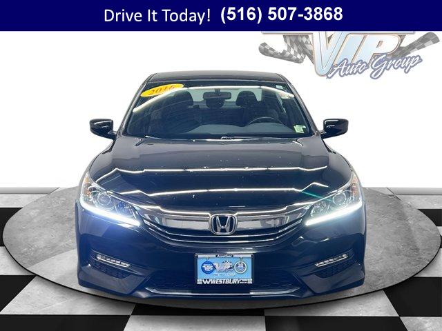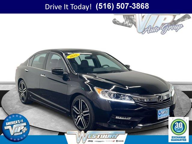 • The 2016 Honda Accord 4D Sedan delivers the comfort, refinement, and dependable performance daily drivers want, with low miles for its age. Finished in black with a clean cloth interior, it balances a confident stance with an easygoing ride for errands, work commutes, and weekend miles alike. Honda's smooth 2.4L i-VTEC 4-cylinder provides responsive power while four-wheel independent suspension and speed-sensing steering help the car feel composed in traffic and planted on the highway. Dual-zone automatic temperature control keeps everyone comfortable, and the cabin's smart layout makes every trip simple.Parking and visibility are made easier by the exterior rearview camera, fully automatic headlights, front fog lights, and a rear window defroster. Everyday usability shines through with a power driver seat for personalized support, split-folding rear seat to expand cargo room, front and rear center armrests for long-haul comfort, and remote keyless entry for quick getaways. The 160-watt AM/FM/CD audio system with radio data system delivers clear sound, while steering wheel media controls let you turn it up without taking your hands off the wheel. A trip computer, outside temperature display, tachometer, and illuminated entry help you keep tabs on the details. Safety and control tech include electronic stability control, traction control, 4-wheel disc brakes, ABS, and brake assist, backed by a four-wheel independent suspension and rear anti-roll bar, all working together for confident handling. Speed-sensitive wipers, variably intermittent wipers, power windows and mirrors, security system with panic alarm, and more round out the thoughtful touches.With just 98,184 miles, this Accord has low miles for its age and reflects the kind of steady, careful use shoppers appreciate. It feels dialed in and ready to serve as a dependable, affordable used car for years to come.VIP+ ProgramEnjoy unlimited oil and filter changes for 1 year, then included with every factory maintenance thereafter. You also receive complimentary NYS inspections, complimentary loaner cars, and complimentary 24/7 rescue and towing. These VIP+ benefits are For Life and Transferable, adding long-term value and convenience to your ownership.Purchase with confidence knowing our team has inspected and road-tested this Accord so it is ready for your driveway. We are here to answer questions and help you choose the protection and service options that best fit your driving needs.More About UsEvery vehicle is hand selected for quality and long-term reliability, and reconditioning is completed prior to sale so you can buy with confidence. Our certified vehicles meet strict standards, including brake life no less than 50 percent, for added peace of mind. Proud member of the VIP Auto Group serving the local community since 1957, We Will Satisfy You!This Accord's practical sedan layout, supportive seating, and dual-zone climate control make daily commuting easier, while the rearview camera and stability technologies add confidence when the weather turns. 19-inch alloy wheels and all-season features like automatic headlights, defroster, and fog lights help you feel prepared for changing conditions in the Northeast. Ideal for Long Island drivers who value long-term reliability, it is a strong fit for NY winter roadwork, offering safety-focused engineering and ownership value that goes the distance.If you are a Long Island or New York shopper ready to experience this Accord, call today, schedule a test drive, or learn more at WestburyJeep.com. View up-to-date inventory and current pricing online. Please note, the feature list and vehicle description are intended as a general overview and may vary by vehicle.