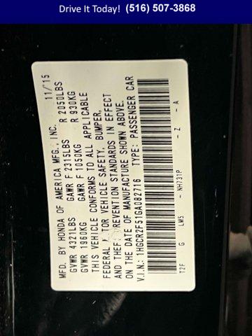 For more information on this 2016 Honda Accord, please call Westbury Jeep Chrysler Dodge at (516) 507-3868 or with the contact form on this page. This vehicle's vin number is 1HGCR2F51GA082716 and is recorded as being in stock at Westbury Jeep Chrysler Dodge at 100 Jericho Tpke in Jericho. See all cars from this dealership.