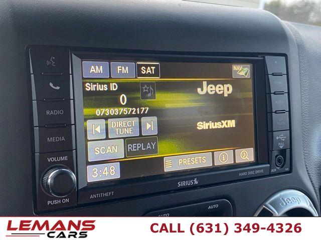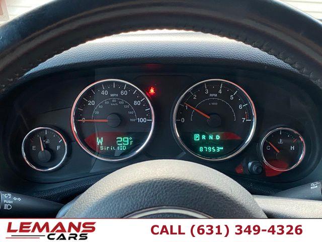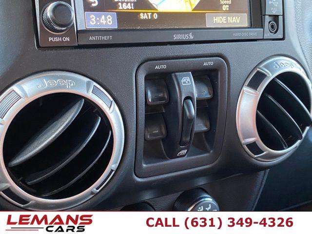 • ABS, 4-Wheel Disc Brakes, A/C, Adjustable Steering Wheel, Security System, Aluminum Wheels, AM/FM Stereo, Automatic Headlights, Auxiliary Audio Input, Brake Actuated Limited Slip Differential, Brake Assist, Bucket Seats, Child Safety Locks, Cruise Control, Driver Air Bag, Driver Vanity Mirror, Auto-Dimming Rearview Mirror, Stability Control, Fog Lamps, Four Wheel Drive, Floor Mats, Tow Hooks, Conventional Spare Tire, Gasoline Fuel, Heated Mirrors, Intermittent Wipers, Keyless Entry, Leather Steering Wheel, Locking/Limited Slip Differential, MP3 Player, Pass-Through Rear Seat, Passenger Air Bag, Passenger Air Bag Sensor, Passenger Vanity Mirror, Power Door Locks, Power Mirror(s), Power Steering, Power Windows, Privacy Glass, Rear Bench Seat, Requires Subscription, Rollover Protection Bars, Satellite Radio, Steering Wheel Audio Controls, Tire Pressure Monitor, Tires - Front On/Off Road, Tires - Rear On/Off Road, Traction Control, Trip Computer, V6 Cylinder Engine, Variable Speed Intermittent Wipers, Immobilizer, Aluminum Spare Wheel, Auto On/Off Aero-Composite Halogen Headlamps, Black Door Handles, Black Fender Flares, Black Front Bumper w/2 Tow Hooks, Black Power Heated Side Mirrors w/Manual Folding, Black Rear Bumper w/1 Tow Hook, Black Side Windows Trim, Body-Colored Grille, Clearcoat Paint w/Badging, Convertible w/Fixed Roll-Over Protection, Deep Tinted Glass, Front Fog Lamps, Full-Size Spare Tire Mounted Outside Rear, Fully Galvanized Steel Panels, Removable Rear Window, Sunrider Soft Top, Swing-Out Rear Cargo Access, Tailgate/Rear Door Lock Included w/Power Door Locks, Tires: LT255/75R17C BSW Off Road, Variable Intermittent Wipers, Wheels: 17" x 7.5" Polished Mineral Gray, 2 12V DC Power Outlets, 2 12V DC Power Outlets and 1 120V AC Power Outlet, 2 Seatback Storage Pockets, 4-Way Passenger Seat -inc: Manual Recline and Fore/Aft Movement, 6-Way Driver Seat -inc: Manual Recline, Height Adjustment and Fore/Aft Movement, 60-40 Folding Split-Bench Front Facing Fold Forward Seatback Rear Seat, Analog Appearance, Carpet Floor Trim, Carpet And Rubber Mat, Cloth Seats w/Adjustable Head Restraints, Compass, Cruise Control w/Steering Wheel Controls, Day-Night Auto-Dimming Rearview Mirror, Delayed Accessory Power, Driver And Passenger Visor Vanity Mirrors, Fade-To-Off Interior Lighting, Front Center Armrest w/Storage, Front Cupholder, Front Map Lights, Full Carpet Floor Covering -inc: Carpet Front And Rear Floor Mats, Full Floor Console w/Locking Storage, 2 12V DC Power Outlets and 1 120V AC Power Outlet, Gauges -inc: Speedometer, Odometer, Engine Coolant Temp, Tachometer, Trip Odometer and Trip Computer, Instrument Panel Bin, Dashboard Storage, Driver And Passenger Door Bins, Interior Trim -inc: Deluxe Sound Insulation, Metal-Look Instrument Panel Insert, Metal-Look Door Panel Insert and Metal-Look Interior Accents, Leather Wrapped Steering Wheel, Leather/Chrome Gear Shifter Material, Locking Cargo Area Concealed Storage, Locking Glove Box, Manual Adjustable Front Head Restraints and Fixed Rear Head Restraints, Manual Air Conditioning, Manual Tilt Steering Column, Outside Temp Gauge, Perimeter Alarm, Power 1st Row Windows w/Driver And Passenger 1-Touch Down, Power Door Locks w/Autolock Feature, Power Rear Windows and Removable 3rd Row Windows, Rear Cupholder, Remote Keyless Entry w/Integrated Key Transmitter, Illuminated Entry and Panic Button, Sentry Key Immobilizer, Trip Computer, 160 Amp Alternator, 22.5 Gal. Fuel Tank, 4 Skid Plates, 4-Wheel Disc Brakes w/4-Wheel ABS, Front And Rear Vented Discs, Brake Assist and Hill Hold Control, 4.10 Rear Axle Ratio, 50 State Emissions, 600CCA Maintenance-Free Battery, 892# Maximum Payload, Auto Locking Hubs, Brake Actuated Limited Slip Differential, Driver Selectable Front Locking Differential, Driver Selectable Rear Locking Differential, Engine Oil Cooler, Engine: 3.6L V6 24V VVT, Front Active w/Driver Control Anti-Roll Bar and Rear Anti-Roll Bar, GVWR: 5, 700 lbs, HD Shock Absorbers, Hydraulic Power-Assist Steering, Leading Link Front Suspension w/Coil Springs, Manual Transfer Case, Part-Time Four-Wheel Drive, Performance Suspension, Single Stainless Steel Exhaust, Solid Axle Rear Suspension w/Coil Springs, Towing Equipment -inc: Trailer Sway Control, Transmission: 6-Speed Manual (NSG370), ABS Traction Control, Airbag Occupancy Sensor, Dual Stage Driver And Passenger Front Airbags, Electronic Stability Control (ESC) And Roll Stability Control (RSC), Low Tire Pressure Warning, Outboard Front Lap And Shoulder Safety Belts -inc: Rear Center 3 Point, Height Adjusters and Pretensioners, Rear Child Safety Locks, Side Impact Beams