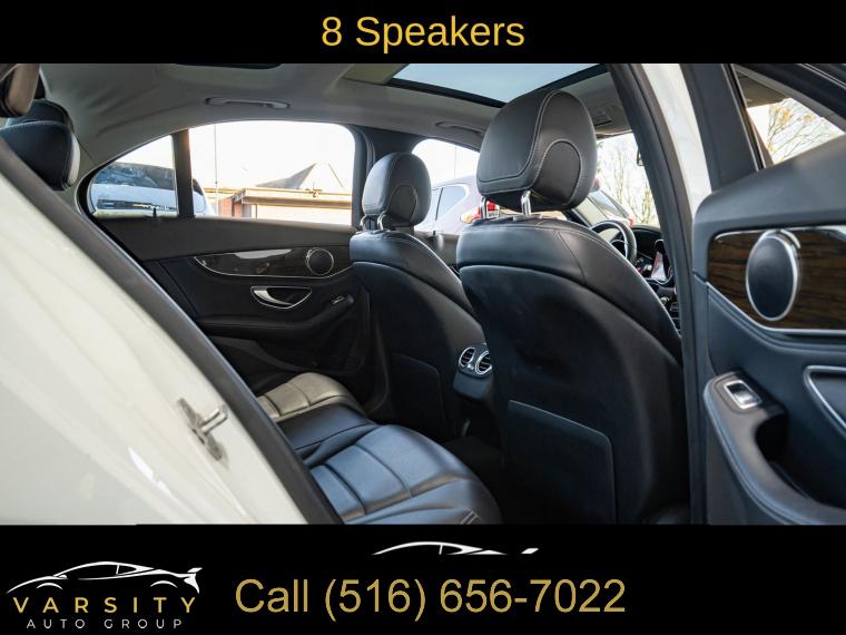 Multimedia Package, Premium 1 Package, 8 Speakers, AM/FM radio, CD player, Premium audio system: COMAND®, Radio data system, Radio: HD AM/FM Single Disc CD/MP3, SiriusXM Satellite Radio, Weather band radio, Air Conditioning, Automatic temperature control, Front dual zone A/C, Rear window defroster, Head restraints memory, Memory seat, Power driver seat, Power steering, Power windows, Remote keyless entry, Steering wheel memory, Steering wheel mounted audio controls, Four wheel independent suspension, Speed-sensing steering, Traction control, 4-Wheel Disc Brakes, ABS brakes, Anti-whiplash front head restraints, Child-Seat-Sensing Airbag, Dual front impact airbags, Dual front side impact airbags, Emergency communication system: mbrace2, Front anti-roll bar, KEYLESS GO®, Knee airbag, Low tire pressure warning, Occupant sensing airbag, Overhead airbag, Rear anti-roll bar, Panorama Sunroof, Blind Spot Assist, Brake assist, Electronic Stability Control, Delay-off headlights, Fully automatic headlights, Rear fog lights, Panic alarm, Security system, Speed control, Auto-dimming door mirrors, Bumpers: body-color, Heated door mirrors, Power door mirrors, Surround Light Mirror Mounted Entry Lamps, Turn signal indicator mirrors, Auto tilt-away steering wheel, Auto-dimming Rear-View mirror, COMAND® Navigation & Voice Control, Compass, Driver door bin, Driver vanity mirror, Front reading lights, Garage door transmitter: Homelink, Genuine wood console insert, Genuine wood dashboard insert, Genuine wood door panel insert, Illuminated entry, Navigation Map Updates Included For 3 Years, Outside temperature display, Overhead console, Passenger vanity mirror, Rear reading lights, Rear seat center armrest, SiriusXM Traffic and Weather Services, Tachometer, Telescoping steering wheel, Tilt steering wheel, Trip computer, Front Bucket Seats, Front Center Armrest, Heated Front Seats, MB-Tex Upholstery, Power passenger seat, Split folding rear seat, Passenger door bin, 18" 5-Spoke Wheels, Alloy wheels, Wheel Locks, Rain sensing wipers, Variably intermittent wipers, The Price you See, is the Price You Pay!!!, Mercedes-Benz C 300, Polar White, Black w/Leather Upholstery, One Owner, Low Miles