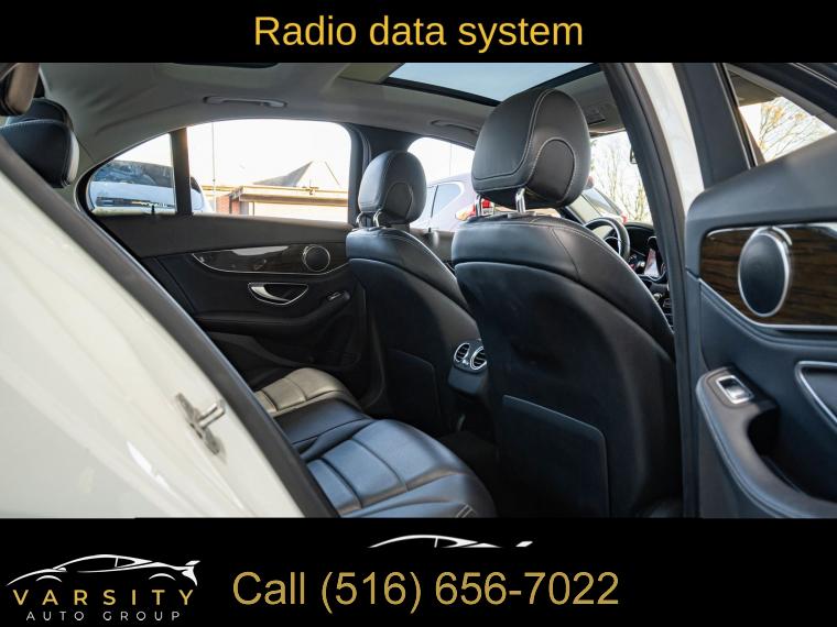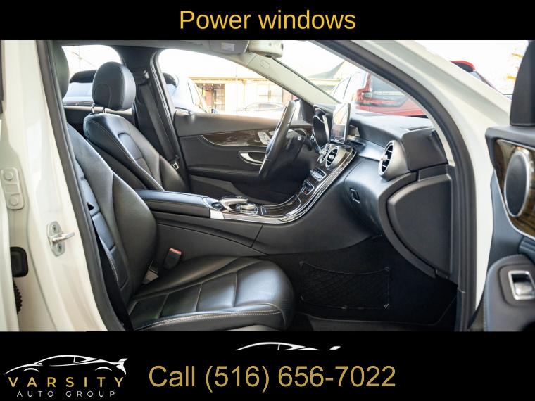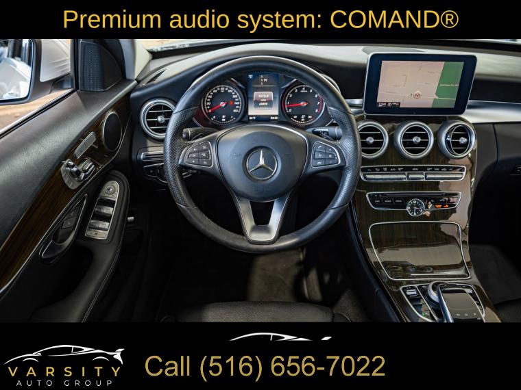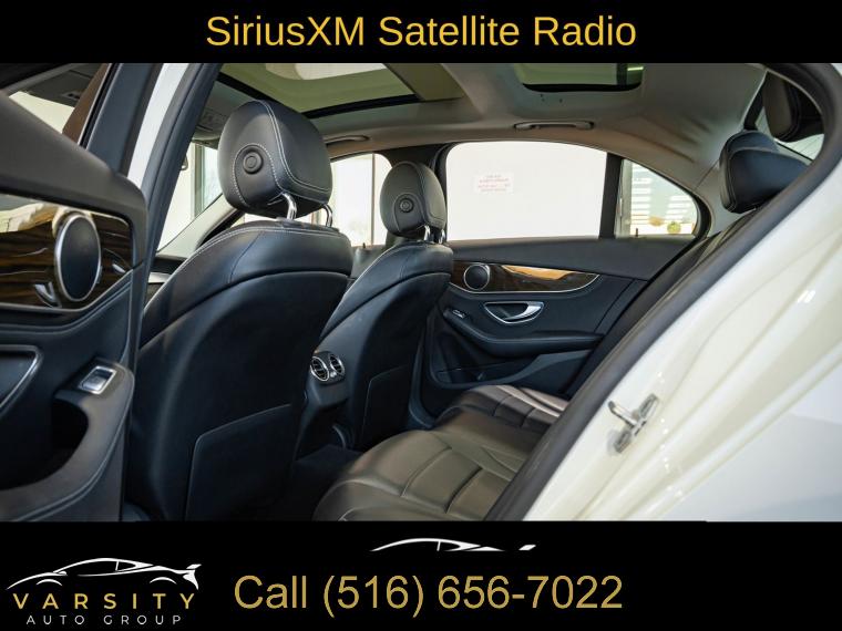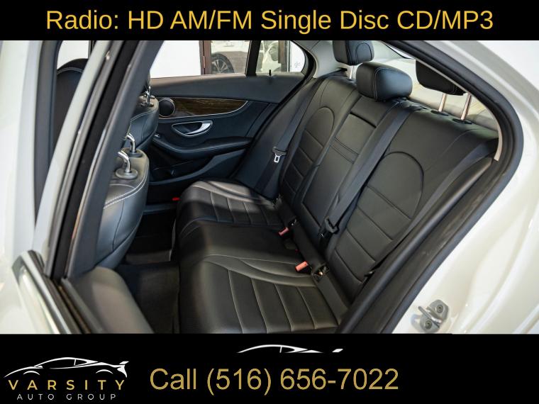 Multimedia Package, Premium 1 Package, 8 Speakers, AM/FM radio, CD player, Premium audio system: COMAND®, Radio data system, Radio: HD AM/FM Single Disc CD/MP3, SiriusXM Satellite Radio, Weather band radio, Air Conditioning, Automatic temperature control, Front dual zone A/C, Rear window defroster, Head restraints memory, Memory seat, Power driver seat, Power steering, Power windows, Remote keyless entry, Steering wheel memory, Steering wheel mounted audio controls, Four wheel independent suspension, Speed-sensing steering, Traction control, 4-Wheel Disc Brakes, ABS brakes, Anti-whiplash front head restraints, Child-Seat-Sensing Airbag, Dual front impact airbags, Dual front side impact airbags, Emergency communication system: mbrace2, Front anti-roll bar, KEYLESS GO®, Knee airbag, Low tire pressure warning, Occupant sensing airbag, Overhead airbag, Rear anti-roll bar, Panorama Sunroof, Blind Spot Assist, Brake assist, Electronic Stability Control, Delay-off headlights, Fully automatic headlights, Rear fog lights, Panic alarm, Security system, Speed control, Auto-dimming door mirrors, Bumpers: body-color, Heated door mirrors, Power door mirrors, Surround Light Mirror Mounted Entry Lamps, Turn signal indicator mirrors, Auto tilt-away steering wheel, Auto-dimming Rear-View mirror, COMAND® Navigation & Voice Control, Compass, Driver door bin, Driver vanity mirror, Front reading lights, Garage door transmitter: Homelink, Genuine wood console insert, Genuine wood dashboard insert, Genuine wood door panel insert, Illuminated entry, Navigation Map Updates Included For 3 Years, Outside temperature display, Overhead console, Passenger vanity mirror, Rear reading lights, Rear seat center armrest, SiriusXM Traffic and Weather Services, Tachometer, Telescoping steering wheel, Tilt steering wheel, Trip computer, Front Bucket Seats, Front Center Armrest, Heated Front Seats, MB-Tex Upholstery, Power passenger seat, Split folding rear seat, Passenger door bin, 18" 5-Spoke Wheels, Alloy wheels, Wheel Locks, Rain sensing wipers, Variably intermittent wipers, Mercedes-Benz C 300, Polar White, Black w/Leather Upholstery, One Owner, Low Miles