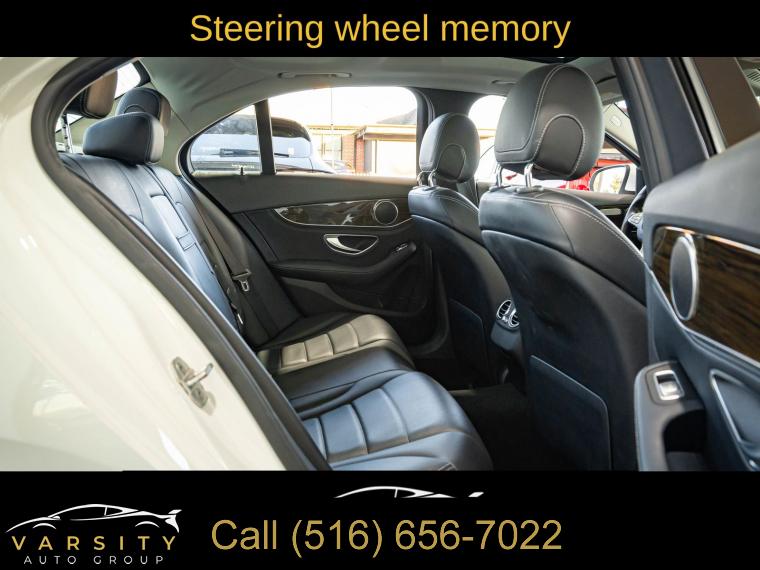 Mercedes-Benz C 300, Polar White, Black w/Leather Upholstery, One Owner, Low Miles, Premium 1 Package, Multimedia Package, 18" 5-Spoke Wheels, 4-Wheel Disc Brakes, 8 Speakers, ABS brakes, Air Conditioning, Alloy wheels, AM/FM radio, Anti-whiplash front head restraints, Auto tilt-away steering wheel, Auto-dimming door mirrors, Auto-dimming Rear-View mirror, Automatic temperature control, Blind Spot Assist, Brake assist, Bumpers: body-color, CD player, Child-Seat-Sensing Airbag, COMAND® Navigation & Voice Control, Compass, Delay-off headlights, Driver door bin, Driver vanity mirror, Dual front impact airbags, Dual front side impact airbags, Electronic Stability Control, Emergency communication system: mbrace2, Four wheel independent suspension, Front anti-roll bar, Front Bucket Seats, Front Center Armrest, Front dual zone A/C, Front reading lights, Fully automatic headlights, Garage door transmitter: Homelink, Genuine wood console insert, Genuine wood dashboard insert, Genuine wood door panel insert, Head restraints memory, Heated door mirrors, Heated Front Seats, Illuminated entry, KEYLESS GO®, Knee airbag, Low tire pressure warning, MB-Tex Upholstery, Memory seat, Multimedia Package, Navigation Map Updates Included For 3 Years, Occupant sensing airbag, Outside temperature display, Overhead airbag, Overhead console, Panic alarm, Panorama Sunroof, Passenger door bin, Passenger vanity mirror, Power door mirrors, Power driver seat, Power passenger seat, Power steering, Power windows, Premium 1 Package, Premium audio system: COMAND®, Radio data system, Radio: HD AM/FM Single Disc CD/MP3, Rain sensing wipers, Rear anti-roll bar, Rear fog lights, Rear reading lights, Rear seat center armrest, Rear window defroster, Remote keyless entry, Security system, SiriusXM Satellite Radio, SiriusXM Traffic and Weather Services, Speed control, Speed-sensing steering, Split folding rear seat, Steering wheel memory, Steering wheel mounted audio controls, Surround Light Mirror Mounted Entry Lamps, Tachometer, Telescoping steering wheel, Tilt steering wheel, Traction control, Trip computer, Turn signal indicator mirrors, Variably intermittent wipers, Weather band radio, Wheel Locks. Polar White 2016 Mercedes-Benz C-Class C 300 RWD 7G-TRONIC PLUS 7-Speed Automatic 2.0L I4 Turbocharged Odometer is 28855 miles below market average! 25/34 City/Highway MPG