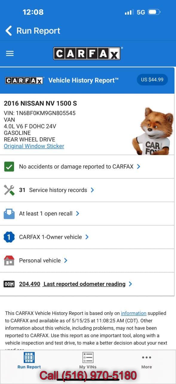 For more information on this 2016 Nissan NV, please call Car Father at (516) 970-5180 or with the contact form on this page. This vehicle's vin number is 1N6BF0KM9GN805545 and is recorded as being in stock at Car Father at 4214 Austin Blvd in Island Park. See all cars from this dealership.