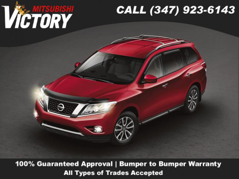 2016 Nissan Pathfinder Platinum Magnetic Black Metallic 4D Sport Utility Save yourself Time and Money - Fill out a credit application online at victorymitsubishi.com and get pre-APPROVED! Financing available for all types of credit with low monthly payment that will fit you budget. Down Payment low as $599. Same day delivery. View our entire inventory by visiting our virtual showroom at victorymitsubishi.com - Only 2 blocks away from Exit 13 off I-95 or Minutes from exit 7 on the Hutchinson Parkway. While we make every effort to ensure the data listed here is correct, there may be instances where the pricing, options or vehicle features may be listed incorrectly. Dealer cannot be held liable for data that is listed incorrectly. to see more pictures of this vehicle or call us at (347) 923-6143 today to schedule your test drive. please refer to dealer’s website for exact pricing and for any incentives that we may apply! Our address is 4070 Boston Road, Bronx, NY 10475.