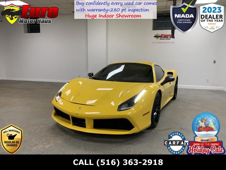 Introducing the breathtaking 2017 Ferrari 488 Spider, a true work of art with just 17,823 meticulously maintained miles and a flawless condition that guarantees to amaze. This spectacular convertible features a striking Giallo Modena Yellow exterior coupled with a luxurious black interior adorned with captivating yellow stitching. Underneath the bonnet resides a ferocious Twin Turbo 3.9L Mid-Mounted V-8 Engine, unleashing a staggering 661 horsepower at 8000 RPM, seamlessly managed by the 7-Speed F1 Dual Clutch Transmission. This exotic sports car seamlessly integrates safety and technology, incorporating advanced features like the Manettino Steering Wheel, Rear Parking Sensors, and SCM3 Magnetic Suspension Damping.This exceptional Ferrari 488 Spider is further complemented by an array of additional options, elevating the driving experience to new heights. Notable among these enhancements are Apple CarPlay ($4,219), AFS System ($2,169), Yellow Brake Calipers ($1,516), Daytona Style Seats ($4,049), Suspension Lifter ($5,062), Horse Stitched on Headrest ($1,266), Colored Mats with Logo ($1,348), Heat Insulating Windscreen ($1,179), Carbon Fiber Steering Wheel with LEDs ($5,062), 'SCUDERIA FERRARI' Shields ($1,711), Front and Rear Parking Cameras ($6,074), and a Passenger Display ($4,219).What sets this car apart is the custom-built titanium exhaust system, meticulously crafted by Capristo Exhaust, which adds an additional layer of uniqueness and performance to this masterpiece, valued at a remarkable $15,000. Moreover, the factory exhaust system is also included, giving you the choice to tailor the exhaust note to your preference.With these exceptional options totaling an additional $21,568 and an Original MSRP totaling an astonishing $344,092, this Ferrari promises an unparalleled driving experience. Don't miss the chance to own this stunning automotive masterpiece schedule a test drive today and experience the thrill of Italian excellence firsthand! ? Call (516) 363-2918 prior to your visit for special internet pricing and quick answers to your questions ? to see more pictures of this vehicle or stop in person and view our large variety of certified pre owned luxury vehicles at 305 East Shore Road Great Neck NY 11023 or call us at (516) 363-2918 today to schedule your test drive. We are a FRANCHISE Affiliated Luxury Pre-Owned Car dealership connected to over 4 Franchise Dealerships. What that means for you is that we have ability to obtain you low rate financing through our major lending institutions. Wells Fargo TD Bank Capital One Bank Bank of America US Bank Exeter auto finance Chase Automotive Ally Financial Santander Key Bank all NY based credit unions and many more.The benefits of which are then transferred to our clientele. We are able to offer FRANCHISE finance rates up to 84 months. With our affiliation we are also permitted to sell New Car Service Contracts here with our CERTIFIED PRE-OWNED PROGRAM backed by SafeGuard and GWC and NIADA Warrantech . Come in and have our friendly and knowledgeable staff facilitate your needs. Euro Motor Haus Inc does not guarantee any ad disclaimer guarantees etc on any 3rd party website.Please note that the advertised price does not include sales tax registration DMV transportation of vehicle costs incurred by the dealer as for safety including but not limited to brakes tires and fluids and any additional fees required by law. Prices exclude any additional charges included with the cost of closing including any governmental charges and taxes any finance charges documentation preparation or warranty. The advertised price represents the vehicle in its current condition and subject to change depending on any additional costs incurred or market fluctuations. Inventory prices are liable to change without warning. Vehicles are offered on a first come first serve basis. Please call to inquire. Advertised price includes all dealer rebates and incentives but not inclusive of certification & dealer prep. We make every attempt to adequately represent the condition and features of all inventory including vehicle information pictures pricing and status but there may be inaccuracies. Updates may be delayed. Dealer assumes no responsibility for inaccuracies in online information. All internet special prices expire at 11:59 pm today. Must present offer prior to expiration.All of our vehicles go through a rigorous Safeguard/ GWC & NIADA certified and backed inspection. They Are pre certified. You work you drive!!! Instant financing available!!! We have great relationships with many lending institutions and we are the Home of the Guaranteed Approval.All finance deals are subject to primary lender approval. Challenged credit no credit no problem! PRICES MAY DIFFER WITH PAYMENT OPTIONS. **Many are 1 owner or off lease vehicles. **Free Vehicle History Reports **100% TOTALLY Indoor Facility **Nationwide Financing available **Extended Service Contracts available **Our cars under 100k miles all come with at least a 30 day warranty standard **Many are out of state clean cars **Trade ins welcomed **No Haggle Pricing!