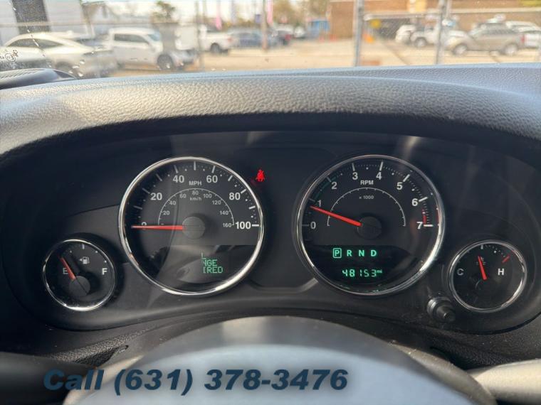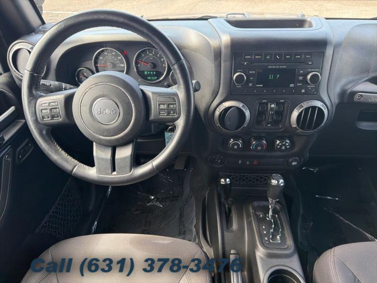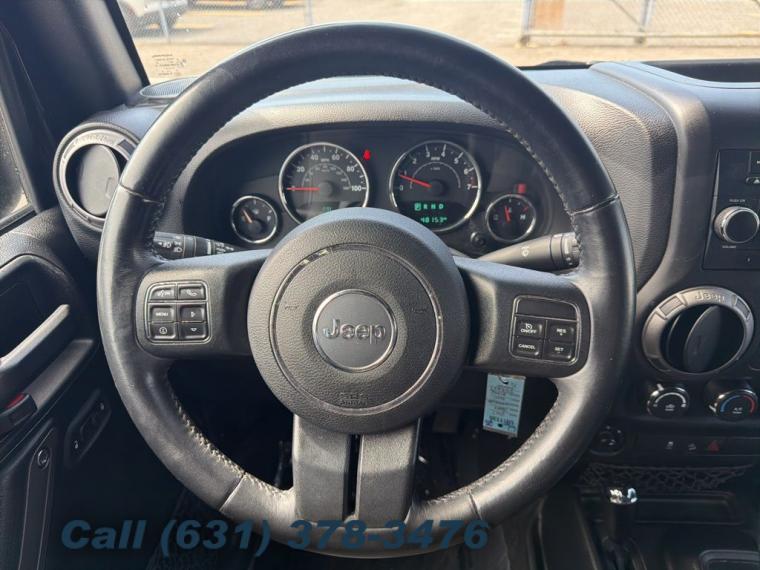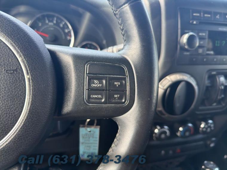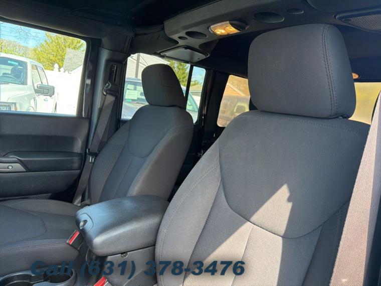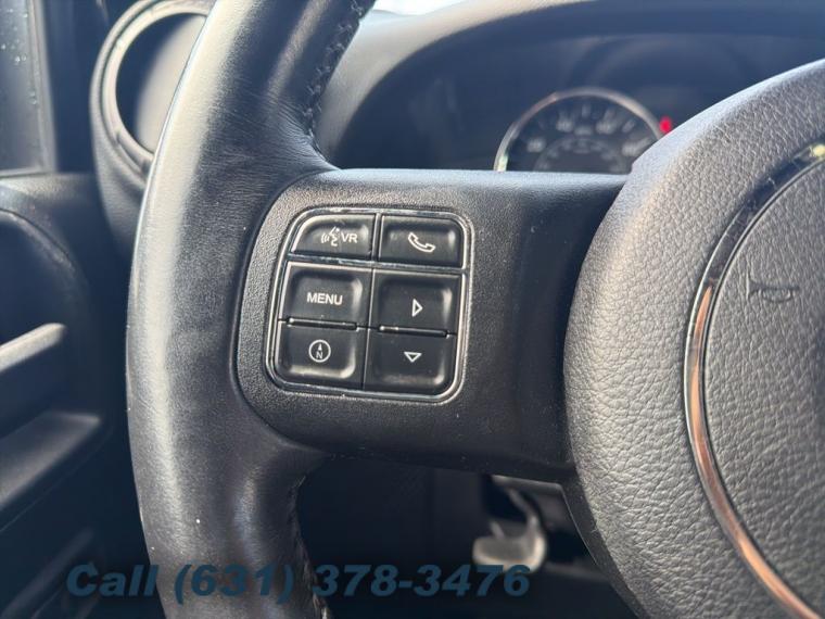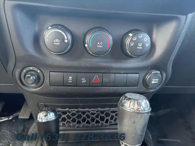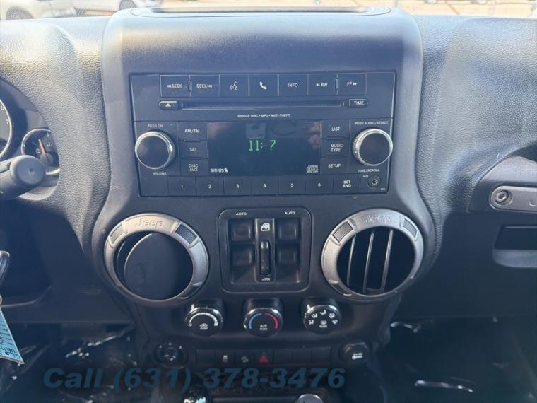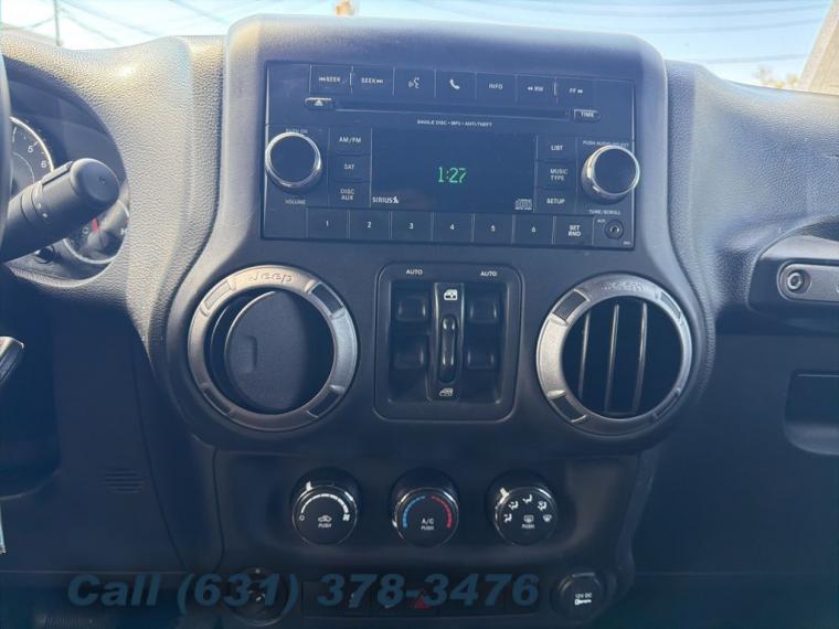 Connectivity Group, Quick Order Package 24S, 1-Yr SiriusXM Radio Service, 8 Speakers, AM/FM radio, CD player, Radio: 130, Remote USB Port, SIRIUS Satellite Radio, Air Conditioning, Front 1-Touch Down Power Windows, Power Locks, Power steering, Remote Keyless Entry, Security Alarm, Steering wheel mounted audio controls, Tire Pressure Monitoring Display, Normal Duty Suspension, Traction control, 4-Wheel Disc Brakes, ABS brakes, Dual front impact airbags, Front anti-roll bar, Integrated roll-over protection, Low tire pressure warning, Occupant sensing airbag, Rear anti-roll bar, Brake assist, Electronic Stability Control, Front fog lights, Speed control, Power Heated Mirrors, Premium Black Sunrider Soft Top, Auto-Dimming Mirror w/Reading Lamp, Chrome/Leather Wrapped Shift Knob, Cloth Seats w/Adjustable Head Restraints, Compass, Driver door bin, Driver vanity mirror, Leather Wrapped Steering Wheel, Outside temperature display, Passenger vanity mirror, Power Convenience Group, Tachometer, Tilt steering wheel, Trip computer, Uconnect Voice Command w/Bluetooth, Vehicle Information Center, Front Bucket Seats, Split folding rear seat, Front Center Armrest w/Storage, Passenger door bin, 16" x 7.0" Luxury Styled Steel Wheels, 17" x 7.5" Aluminum Wheels, Deep Tint Sunscreen Windows, Variably intermittent wipers, 3.21 Rear Axle Ratio
