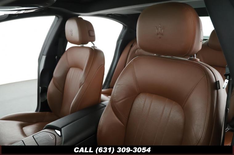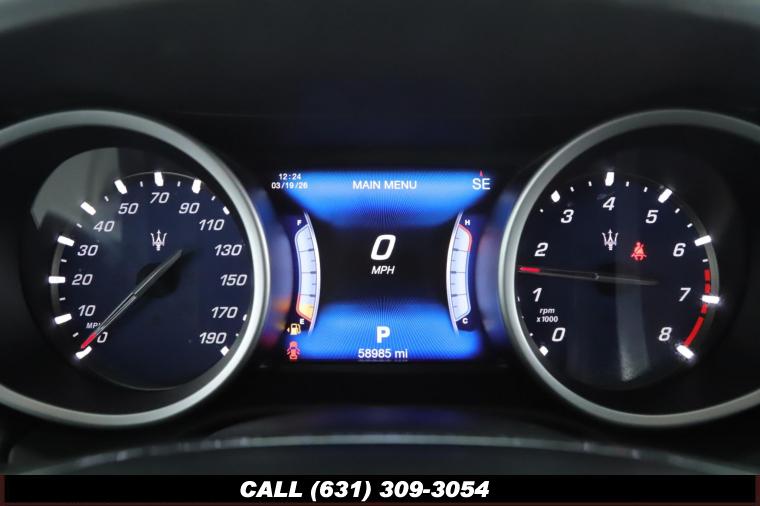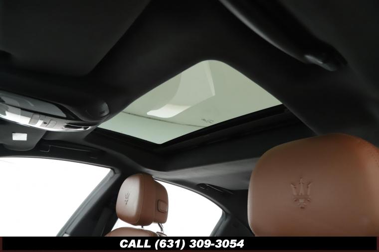 4-Wheel Disc Brakes, 8 Speakers, 8-Way Power Heated Front Comfort Seats, ABS brakes, Air Conditioning, Alloy wheels, AM/FM radio, Anti-whiplash front head restraints, Apple CarPlay/Android Auto, Auto High-beam Headlights, Auto-dimming door mirrors, Auto-dimming Rear-View mirror, Automatic temperature control, Brake Assist, Bumpers: body-color, Compass, Delay-off headlights, Driver door bin, Driver Vanity Mirror, Dual front impact airbags, Dual front side impact airbags, Electronic Stability Control, Exterior Parking Camera Rear, Four wheel independent suspension, Front anti-roll bar, Front beverage holders, Front Bucket Seats, Front Center Armrest w/Storage, Front dual zone A/C, Front reading lights, Garage door transmitter, Genuine wood console insert, Genuine wood door panel insert, Headlight cleaning, Heated door mirrors, Heated front seats, High intensity discharge headlights: Bi-Xenon, Illuminated entry, Knee airbag, Leather Shift Knob, Leather Steering Wheel, Leather Upholstery, Low tire pressure warning, Memory seat, Navigation System, Occupant sensing airbag, Open Pore Radica Wood Trim, Outside temperature display, Overhead airbag, Overhead console, Panic alarm, Passenger door bin, Passenger Vanity Mirror, Power door mirrors, Power Driver Seat, Power moonroof, Power Passenger Seat, Power Steering, Power Windows, Radio data system, Radio: Maserati Touch Control Plus, Rain Sensing Wipers, Rear anti-roll bar, Rear fog lights, Rear reading lights, Rear window defroster, Remote keyless entry, Security System, Speed control, Speed-sensing steering, Speed-Sensitive Wipers, Split folding rear seat, Steering wheel memory, Steering wheel mounted audio controls, Tachometer, Telescoping steering wheel, Tilt steering wheel, Traction Control, Trip Computer, Turn signal indicator mirrors, Variably intermittent wipers, Voltmeter, Wheels: 19 Poseidone Alloy