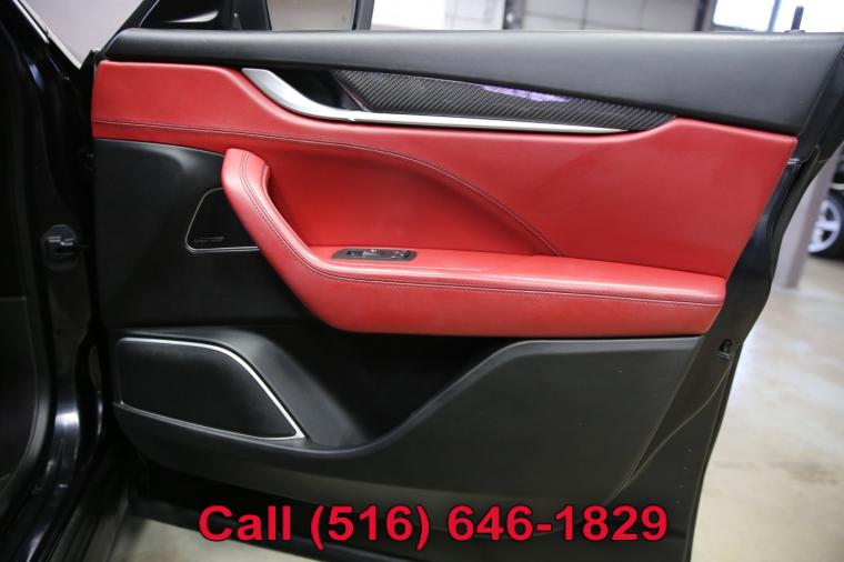 2018 Maserati Levante Q4 finished with a Nero Metallic exterior and Red leather interior. Driven 60,418 careful miles since new. Options on this Levante include the Q4 All Wheel Drive System, Dual Pane Panoramic Roof, Factory Navigation System, Rear Backup Camera, 21 Inch Wheels, Red Calipers, Lane Change Assist, Carbon Fiber Trim Package, Trident Logos in the Headrests and much more. This Levante Q4 just underwent a complete oil and fluid service within the last 20 miles and it drives even better than it looks. The twin-turbocharged 6 cylinder engine is strong and powerful and the automatic transmission shifts effortlessly through all of the gears. The steering is tight and precise and the brakes feel just great. All of the electronics work perfectly and the air conditioning is ice cold. This really is a fantastic Levante to drive. The interior is really nice. The rare Red leather seats are in remarkable condition (see pictures) showing just minimal wear to the seats. The dashboard is like new (looks great with the factory navigation system) and even the carpets don't look or feel like they have been stepped on thanks to the floor mats that have been protecting them. The exterior is what really sets this particular Levante apart from the rest. The Nero Metallic paint is in fantastic condition (see pictures) with no major scratches or dings anywhere at all. The paint is bright and shiny with plenty of luster. Add the optional 21 inch wheels mounted on great tires and this Levante really does look special. The 2017 Maserati Levante really is the ultimate sport utility vehicle. It has fantastic looks and performance, the Q4 all wheel drive system for all weather and road conditions along with all of Maserati's legendary safety, luxury and reliability. The only real apologies are a few typical nicks and chips (see pictures) that are to be expected on any used car. Please feel free to call me (Matt 516-646-1829) with any additional questions you may have.