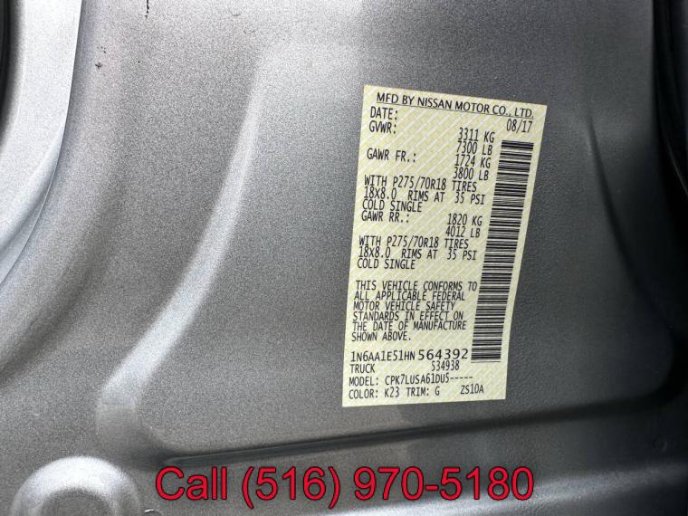 For more information on this 2017 Nissan Titan, please call Car Father at (516) 970-5180 or with the contact form on this page. This vehicle's vin number is 1N6AA1E51HN564392 and is recorded as being in stock at Car Father at 4214 Austin Blvd in Island Park. See all cars from this dealership.