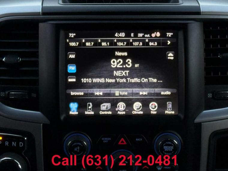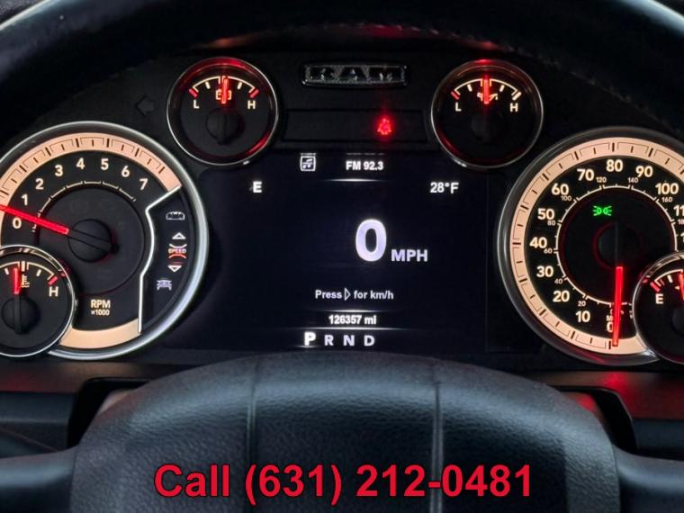 ABS, 4-Wheel Disc Brakes, 8 Cylinder Engine, 8-Speed A/T, A/C, A/T, Adjustable Steering Wheel, Transmission w/Dual Shift Mode, Automatic Headlights, Auxiliary Audio Input, Brake Assist, Child Safety Locks, Cloth Seats, Cruise Control, Daytime Running Lights, Driver Air Bag, Stability Control, Four Wheel Drive, Floor Mats, Conventional Spare Tire, Gasoline Fuel, Heated Mirrors, Integrated Turn Signal Mirrors, Intermittent Wipers, Keyless Entry, MP3 Capability, Passenger Air Bag, Passenger Air Bag Sensor, Passenger Vanity Mirror, Power Door Locks, Power Mirror(s), Power Steering, Power Windows, Privacy Glass, Rear Bench Seat, Rear Head Air Bag, Requires Subscription, Satellite Radio, Front Side Air Bag, Front Head Air Bag, Tire Pressure Monitor, Traction Control, Trip Computer, Variable Speed Intermittent Wipers, Immobilizer, Bluetooth Connection, Auto On/Off Reflector Halogen Daytime Running Headlamps w/Delay-Off, Black Exterior Mirrors, Black Side Windows Trim and Black Front Windshield Trim, Cargo Lamp w/High Mount Stop Light, Centre Hub, Chrome Door Handles, Chrome Front Bumper w/Body-Coloured Rub Strip/Fascia Accent, Chrome Grille, Chrome Rear Step Bumper, Clearcoat Paint, Deep Tinted Glass, Exterior Mirrors w/Heating Element, Front License Plate Bracket, Full-Size Spare Tire Stored Underbody w/Crankdown, Galvanized Steel/Aluminum Panels, Power Rear Window, Power Side Mirrors w/Manual Folding, Regular Box Style, Steel Spare Wheel, Tailgate Rear Cargo Access, Tailgate/Rear Door Lock Included w/Power Door Locks, Tip Start, Tires: P265/70R17 BSW AS, Variable Intermittent Wipers, Wheels: 17" x 7" Aluminum, 2 12V DC Power Outlets, 4-Way Driver Seat -inc: Manual Recline and Fore/Aft Movement, 4-Way Passenger Seat -inc: Manual Recline and Fore/Aft Movement, Analog Appearance, Armrests w/Storage and Rear Centre Armrest, Cargo Area Concealed Storage, Cloth Front 40/20/40 Bench Seat, Compass, Cruise Control w/Steering Wheel Controls, Day-Night Rearview Mirror, Delayed Accessory Power, Driver Information Centre, Fade-To-Off Interior Lighting, FOB Controls -inc: Cargo Access, Front 40/20/40 Split Bench Seat, Front Armrest w/3 Cup Holders, Front Map Lights, Full Carpet Floor Covering -inc: Carpet Front And Rear Floor Mats, Full Cloth Headliner, Full Folding Bench Front Facing Fold-Up Cushion Cloth Rear Seat, Gauges -inc: Speedometer, Odometer, Voltmeter, Oil Pressure, Engine Coolant Temp, Tachometer, Oil Temperature, Transmission Fluid Temp, Engine Hour Meter, Trip Odometer and Trip Computer, Glove Box, GPS Antenna Input, Hands-Free Comm w/Bluetooth, HVAC -inc: Underseat Ducts and Console Ducts, Instrument Panel Bin, Dashboard Storage, Driver / Passenger And Rear Door Bins and 2nd Row Underseat Storage, Interior Trim -inc: Deluxe Sound Insulation, Metal-Look Instrument Panel Insert, Metal-Look Door Panel Insert and Chrome/Metal-Look Interior Accents, Manual Adjustable Front Head Restraints and Manual Adjustable Rear Head Restraints, Manual Air Conditioning, Manual Tilt Steering Column, Mini Overhead Console and 2 12V DC Power Outlets, Outside Temp Gauge, Passenger Visor Vanity Mirror, Pickup Cargo Box Lights, Power 1st Row Windows w/Driver And Passenger 1-Touch Up/Down, Power Door Locks w/Autolock Feature, Power Rear Windows, Rear Cupholder, Redundant Digital Speedometer, Remote Keyless Entry w/Integrated Key Transmitter, Illuminated Entry and Panic Button, Remote USB Port - Charge Only, Seats w/Cloth Back Material, Sentry Key Immobilizer, Storage Tray, Trip Computer, Urethane Gear Shifter Material, Valet Function, Vinyl Door Trim Insert, 160 Amp Alternator, 3.21 Rear Axle Ratio, 4-Wheel Disc Brakes w/4-Wheel ABS, Front Vented Discs, Brake Assist and Hill Hold Control, 730CCA Maintenance-Free Battery, 739.4 Kgs Maximum Payload, 98.4 L Fuel Tank, Auto Locking Hubs, Block Heater, Electric Power-Assist Steering, Electronic Transfer Case, Engine Oil Cooler, Engine: 3.6L Pentastar VVT V6 -inc: Flex Fuel Vehicle, Front And Rear Anti-Roll Bars, GVWR: 3, 084 kgs (6, 800 lbs), HD Shock Absorbers, Part-Time Four-Wheel Drive, Short And Long Arm Front Suspension w/Coil Springs, Single Stainless Steel Exhaust, Solid Axle Rear Suspension w/Coil Springs, Towing Equipment -inc: Trailer Sway Control, Trailer Wiring Harness, Transmission w/Driver Selectable Mode, Sequential Shift Control w/Steering Wheel Controls and Oil Cooler, Transmission: 8-Speed TorqueFlite Automatic (DFL), ABS And Driveline Traction Control, Airbag Occupancy Sensor, Curtain 1st And 2nd Row Airbags, Dual Stage Driver And Passenger Front Airbags, Dual Stage Driver And Passenger Seat-Mounted Side Airbags, Electronic Stability Control (ESC), Outboard Front Lap And Shoulder Safety Belts -inc: Rear Centre 3 Point, Height Adjusters and Pretensioners, Rear Child Safety Locks, Side Impact Beams, Tire Specific Low Tire Pressure Warning