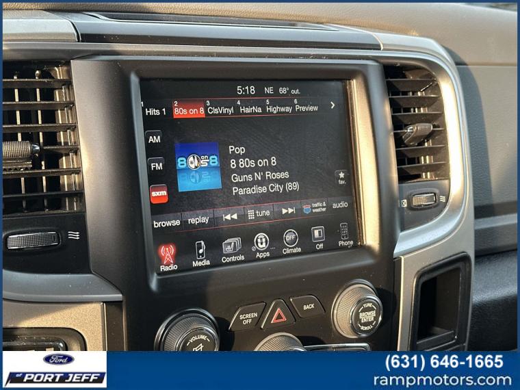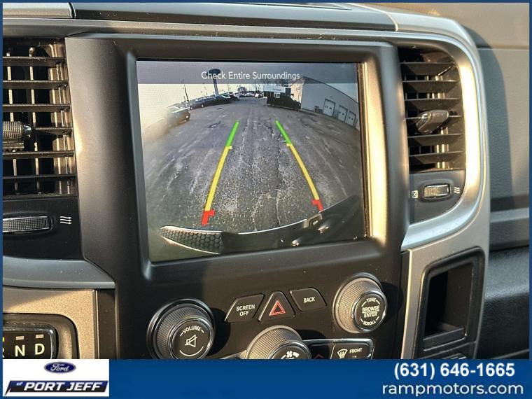 FUEL EFFICIENT 23 MPG Hwy/16 MPG City! Heated Seats, iPod/MP3 Input, Back-Up Camera, 4x4, Alloy Wheels, DIESEL GRAY/BLACK, PREMIUM CLOTH BUCK... ENGINE: 3.6L V6 24V VVT, TRANSMISSION: 8-SPEED AUTOMATIC (845R... Trailer Hitch <br /<br /KEY FEATURES INCLUDE<br /4x4, Back-Up Camera, iPod/MP3 Input, Trailer Hitch, Chrome Wheels MP3 Player, Keyless Entry, Privacy Glass, Child Safety Locks. Ram Big Horn with Granite Crystal Metallic Clearcoat exterior and Diesel Gray/Black interior features a V6 Cylinder Engine with 305 HP at 6400 RPM*. <br /<br /OPTION PACKAGES<br /QUICK ORDER PACKAGE 22S BIG HORN Engine: 3.6L V6 24V VVT, Transmission: 8-Speed Automatic (845RE), Rear View Auto Dim Mirror, Leather Wrapped Steering Wheel, Rear Dome w/On/Off Switch Lamp, Underhood Lamp, LED Bed Lighting, Glove Box Lamp, Bright/Bright Billets Grille, Auto Dim Exterior Mirrors, Big Horn Regional Package, Big Horn Badge, Security Alarm, Power Heated Fold-Away Mirrors, Electroluminescent Instrument Cluster, Overhead Console w/Garage Door Opener, Universal Garage Door Opener, Remote Start System, Full Size Temporary Use Spare Tire, SIRIUSXM Satellite Radio, No satellite coverage in Hawaii or Alaska, (Reg, Required), For Details Visit DriveUconnect.com, Uconnect Access, (Registration Required), 8.4 Touchscreen Display, Nav-Capable! See Dealer for, HEATED SEATS & WHEEL GROUP Heated Steering Wheel, Heated Front Seats, DIESEL GRAY/BLACK, PREMIUM CLOTH BUCKET SEATS Power Lumbar Adjust, 115V Auxiliary Power Outlet, Bucket Seats, Rear 60/40 Split Folding Seat, Folding Flat Load Floor Storage, Power 10-Way Driver Seat, Full Length Upgraded Floor Console, TRANSMISSION: 8-SPEED AUTOMATIC (845RE) (STD), ENGINE: 3.6L V6 24V VVT Flex fuel capable (STD). <br /<br /EXPERTS RAVE<br /Regardless of trim level, the Ram 1500s interior is one of our favorites in the segment. Seat comfort is excellent, especially for long road trips, with soft padding and adequate support in the right places. -Edmunds.com. <br /<br /Horsepower calculations based on trim engine configuration. Fuel economy calculations based on original manufacturer data for trim engine configuration. Please confirm the accuracy of the included equipment by calling us prior to purchase. <br /
