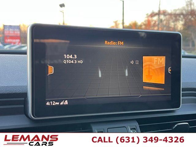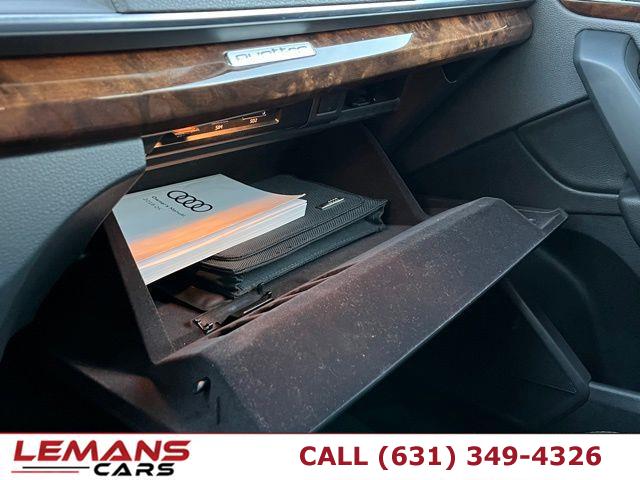 4 Cylinder Engine, ABS, 4-Wheel Disc Brakes, 7-Speed A/T, A/C, A/T, Adjustable Steering Wheel, Security System, All Wheel Drive, Aluminum Wheels, AM/FM Stereo, Transmission w/Dual Shift Mode, Automatic Headlights, Auxiliary Audio Input, Back-Up Camera, Brake Assist, Bucket Seats, Child Safety Locks, Climate Control, Temporary Spare Tire, Cruise Control, Daytime Running Lights, Driver Air Bag, Driver Illuminated Vanity Mirror, Driver Adjustable Lumbar, Driver Vanity Mirror, Multi-Zone A/C, Auto-Dimming Rearview Mirror, Stability Control, Fog Lamps, Front Collision Mitigation, Floor Mats, Gasoline Fuel, HD Radio, Headlights-Auto-Leveling, Heated Mirrors, HID headlights, Integrated Turn Signal Mirrors, Intermittent Wipers, Keyless Entry, Keyless Start, Leather Seats, Leather Steering Wheel, MP3 Player, Pass-Through Rear Seat, Passenger Air Bag, Passenger Air Bag Sensor, Passenger Illuminated Visor Mirror, Passenger Vanity Mirror, Power Door Locks, Power Mirror(s), Power Driver Seat, Power Liftgate, Power Passenger Seat, Power Steering, Power Windows, Privacy Glass, Rain Sensing Wipers, Rear A/C, Rear Bench Seat, Rear Defrost, Rear Head Air Bag, Rear Spoiler, Remote Trunk Release, Front Side Air Bag, Front Head Air Bag, Smart Device Integration, Steering Wheel Audio Controls, Tire Pressure Monitor, Tires - Front All-Season, Tires - Rear All-Season, Traction Control, Trip Computer, Turbocharged, Universal Garage Door Opener, Variable Speed Intermittent Wipers, Immobilizer, Bluetooth Connection, Woodgrain Interior Trim, Black Side Windows Trim, Black Front Windshield Trim and Black Rear Window Trim, Body-Colored Door Handles, Body-Colored Front Bumper w/Metal-Look Rub Strip/Fascia Accent and Metal-Look Bumper Insert, Body-Colored Power Heated Auto Dimming Side Mirrors w/Power Folding and Turn Signal Indicator, Body-Colored Power Heated Side Mirrors w/Manual Folding and Turn Signal Indicator, Body-Colored Rear Bumper w/Metal-Look Rub Strip/Fascia Accent, Clearcoat Paint, Compact Spare Tire Mounted Inside Under Cargo, Cornering Lights, Deep Tinted Glass, Fixed Rear Window w/Fixed Interval Wiper and Defroster, Front And Rear Fog Lamps, Front License Plate Bracket, Galvanized Steel/Aluminum Panels, LED Brakelights, Lip Spoiler, Metal-Look Bodyside Insert, Black Bodyside Cladding and Black Wheel Well Trim, Metal-Look Grille, Perimeter/Approach Lights, Power Liftgate Rear Cargo Access, Programmable Projector Beam High Intensity Low/High Beam Auto-Leveling Daytime Running Lights Preference Setting Headlamps w/Delay-Off, Roof Rack Rails Only, Speed Sensitive Rain Detecting Variable Intermittent Wipers w/Heated Jets, Steel Spare Wheel, Tailgate/Rear Door Lock Included w/Power Door Locks, Tires: 235/60R18 103H AS, Wheels w/Silver Accents, Wheels: 8" x 18" 5-Double-Spoke Dynamic Design, 2 Seatback Storage Pockets, 3 12V DC Power Outlets, 40-20-40 Folding Split-Bench Front Facing Manual Reclining Fold Forward Seatback Rear Seat w/Manual Fore/Aft, 8-Way Power Front Bucket Seats -inc: 4-way driver power lumbar adjustment and driver and front-passenger comfort head rests, 8-Way Power Front Bucket Seats -inc: 4-way driver power lumbar adjustment, driver and front-passenger comfort head rests and driver memory, Air Filtration, Analog Appearance, Audi connect CARE Tracker System, Audi connect PLUS Mobile Hotspot Internet Access, Cargo Area Concealed Storage, Cargo Space Lights, Carpet Floor Trim, Compass, Cruise Control, Day-Night Auto-Dimming Rearview Mirror, Delayed Accessory Power, Digital/Analog Appearance, Driver And Passenger Visor Vanity Mirrors w/Driver And Passenger Illumination, Driver And Passenger Auxiliary Mirror, Driver Foot Rest, Driver Information Center, Driver Seat, Dual Zone Front Automatic Air Conditioning, Fade-To-Off Interior Lighting, FOB Controls -inc: Cargo Access, Front And Rear Map Lights, Front Center Armrest and Rear Center Armrest, Front Cupholder, Full Carpet Floor Covering -inc: Carpet Front And Rear Floor Mats, Full Cloth Headliner, Full Floor Console w/Covered Storage, Mini Overhead Console and 3 12V DC Power Outlets, Gauges -inc: Speedometer, Odometer, Engine Coolant Temp, Tachometer, Oil Level, Trip Odometer and Trip Computer, HomeLink Garage Door Transmitter, HVAC -inc: Underseat Ducts and Console Ducts, Illuminated Locking Glove Box, Immobilizer, Integrated Navigation System w/Voice Activation, Interior Trim -inc: Genuine Wood Instrument Panel Insert, Genuine Wood Door Panel Insert, Genuine Wood Console Insert and Metal-Look Interior Accents, Leather Seating Surfaces, Leather Steering Wheel, Leather/Metal-Look Gear Shifter Material, Leatherette Door Trim Insert, Manual Adjustable Rear Head Restraints, Manual Tilt/Telescoping Steering Column, Memory Settings -inc: Driver Seat and Door Mirrors, Outside Temp Gauge, Passenger Seat, Perimeter Alarm, Power 1st Row Windows w/Front And Rear 1-Touch Up/Down, Power Door Locks w/Autolock Feature, Power Fuel Flap Locking Type, Power Rear Windows and Fixed 3rd Row Windows, Proximity Key For Doors And Push Button Start, Proximity Key For Push Button Start Only, Rear Cupholder, Rear HVAC w/Separate Controls, Redundant Digital Speedometer, Refrigerated/Cooled Box Located In The Glovebox, Driver / Passenger And Rear Door Bins, Remote Keyless Entry w/Integrated Key Transmitter, 4 Door Curb/Courtesy, Illuminated Entry, Illuminated Ignition Switch and Panic Button, Remote Releases -Inc: Power Cargo Access, Trip Computer, Trunk/Hatch Auto-Latch, Valet Function, 18.5 Gal. Fuel Tank, 4-Wheel Disc Brakes w/4-Wheel ABS, Front And Rear Vented Discs, Brake Assist, Hill Descent Control, Hill Hold Control and Electric Parking Brake, 5.302 Axle Ratio, 75-Amp/Hr 420CCA Maintenance-Free Battery w/Run Down Protection, Automatic Full-Time All-Wheel, Electric Power-Assist Speed-Sensing Steering, Engine Auto Stop-Start Feature, Engine Oil Cooler, Engine: 2.0L TFSI Direct-Injection DOHC 4 Cylinder -inc: Audi valvelift system, Front And Rear Anti-Roll Bars, Gas