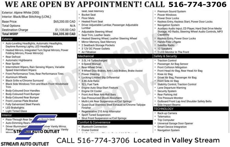 Navigation System, 12 Speakers, AM/FM radio: SiriusXM, AM/FM Stereo, CD player, DVD-Audio, harman/kardon® Logic 7® Digital Surround, harman/kardon® Speakers, Radio data system, SiriusXM Satellite Radio, Air Conditioning, Automatic temperature control, Front dual zone A/C, Rear window defroster, Lumbar Support, Memory seat, Power driver seat, Power steering, Power windows, Remote keyless entry, Steering wheel mounted audio controls, Four wheel independent suspension, Speed-sensing steering, Traction control, 4-Wheel Disc Brakes, ABS brakes, Dual front impact airbags, Dual front side impact airbags, Emergency communication system: BMW Assist eCall, Front anti-roll bar, Knee airbag, Low tire pressure warning, Occupant sensing airbag, Overhead airbag, Rear anti-roll bar, Brake assist, Electronic Stability Control, Exterior Parking Camera Rear, Delay-off headlights, Fully automatic headlights, Panic alarm, Security system, Speed control, Auto-dimming door mirrors, Bumpers: body-color, Heated door mirrors, Power door mirrors, Spoiler, Turn signal indicator mirrors, Auto-dimming Rear-View mirror, Driver door bin, Driver vanity mirror, Enhanced USB & Bluetooth, Front reading lights, Garage door transmitter, Illuminated entry, Leather Shift Knob, Outside temperature display, Passenger vanity mirror, Rear seat center armrest, Sport steering wheel, Tachometer, Telescoping steering wheel, Tilt steering wheel, Trip computer, Dakota Leather Upholstery, Front Bucket Seats, Front Center Armrest, Front Sport Seats, Heated Front Seats, Heated front seats, Power Front Seats, Power passenger seat, Split folding rear seat, Passenger door bin, Alloy wheels, Wheels: 19" x 9.0" Fr & 19" x 10.0" Rr Black, Rain sensing wipers, Speed-Sensitive Wipers, Variably intermittent wipers, * NYS INSPECTION INCLUDED *, * FULL INTERIOR / EXTERIOR DETAIL *, * BLUETOOTH *, * LIMITED NYS LEMON LAW WARRANTY INCLUDED *, *FRESH OIL CHANGE *, * 150 MULTI POINT INSPECTION *