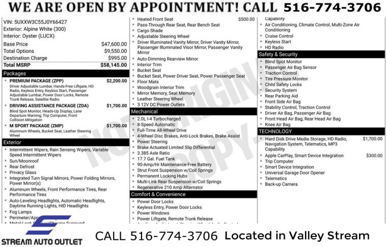 For more information on this 2018 BMW X4, please call Stream Auto Outlet Valley Stream at (516) 774-3706 or with the contact form on this page. This vehicle's vin number is 5UXXW3C55J0Y66427 and is recorded as being in stock at Stream Auto Outlet Valley Stream at 324 W Merrick Rd in Valley Stream. See all cars from this dealership.