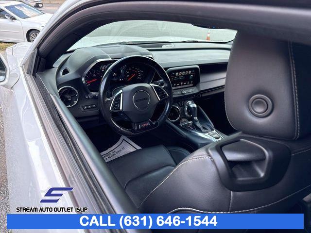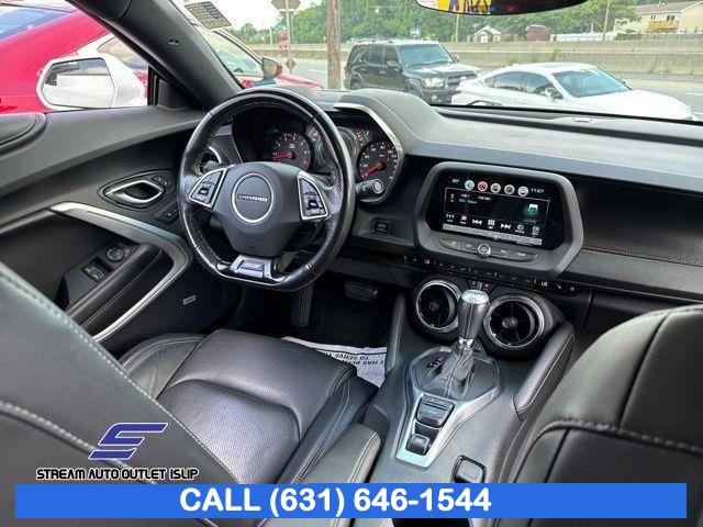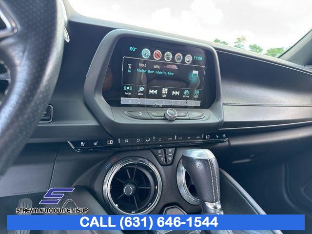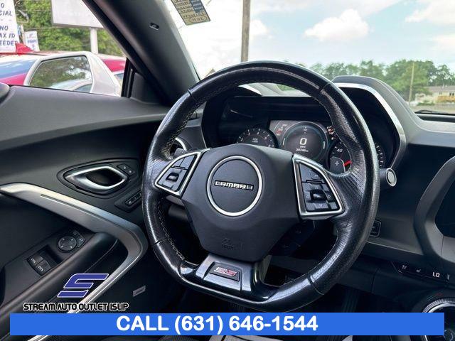 Preferred Equipment Group 2SS, Weather Protection Package, 9 Speakers, AM/FM radio: SiriusXM, Bose Premium 9-Speaker Audio System Feature, Premium audio system: Chevrolet MyLink, Radio data system, Radio: Chevrolet MyLink Audio System, Radio: Chevrolet MyLink w/Navigation, SiriusXM Satellite Radio, Air Conditioning, Automatic temperature control, Front dual zone A/C, Rear window defroster, 6-Way Power Front Passenger Seat Adjuster, 8-Way Power Driver Seat Adjuster, Heads-Up Display, Memory seat, Power driver seat, Power steering, Power windows, Remote keyless entry, Remote Vehicle Starter System, Steering wheel mounted audio controls, Four wheel independent suspension, Speed-sensing steering, Traction control, 4-Wheel Disc Brakes, ABS brakes, Dual front impact airbags, Dual front side impact airbags, Emergency communication system: OnStar Guidance, Front anti-roll bar, Knee airbag, Low tire pressure warning, Occupant sensing airbag, Overhead airbag, Rear anti-roll bar, Power Sunroof, Brake assist, Electronic Stability Control, Exterior Parking Camera Rear, Delay-off headlights, Front fog lights, Fully automatic headlights, High-Intensity Discharge Headlights, Dual Mode Performance Exhaust, Panic alarm, Security system, Speed control, Auto-dimming door mirrors, Body Color Painted Splash Guards (LPO), Bumpers: body-color, Front License Plate Bracket, Heated door mirrors, Paddle-Shift Manual Controls, Spoiler, 2 USB Ports & Auxiliary Input Jack, All-Weather Cargo Mat w/Camaro Logo (LPO), All-Weather Floor Mats, Apple CarPlay/Android Auto, Auto-dimming Rear-View mirror, Compass, Driver door bin, Driver vanity mirror, Front reading lights, Garage door transmitter, Heated steering wheel, Illuminated entry, Leather Shift Knob, Outside temperature display, Passenger vanity mirror, Tachometer, Telescoping steering wheel, Tilt steering wheel, Trip computer, Voltmeter, Front Bucket Seats, Front Center Armrest, Front Sport Bucket Seats, Heated Driver & Front Passenger Seats, Heated front seats, Leather-Trimmed Seat Trim, Power passenger seat, Ventilated Driver & Front Passenger Seats, Ventilated front seats, Passenger door bin, Alloy wheels, Wheels: 20" x 8.5" Fr & 20" x 9.5" Rr 5-Spoke Alum
