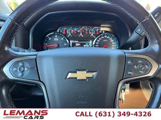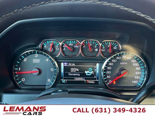 ABS, 4-Wheel Disc Brakes, 8 Cylinder Engine, A/C, A/T, Adjustable Steering Wheel, AM/FM Stereo, Auxiliary Audio Input, Back-Up Camera, CD Player, Cruise Control, Daytime Running Lights, Driver Air Bag, Driver Illuminated Vanity Mirror, Driver Adjustable Lumbar, Driver Restriction Features, Driver Vanity Mirror, Stability Control, Four Wheel Drive, Floor Mats, Tow Hooks, Conventional Spare Tire, Gasoline Fuel, HD Radio, Heated Mirrors, HID headlights, Keyless Entry, Leather Steering Wheel, MP3 Player, Telematics, Pass-Through Rear Seat, Passenger Air Bag, Passenger Air Bag Sensor, Passenger Illuminated Visor Mirror, Passenger Vanity Mirror, Power Door Locks, Power Mirror(s), Power Steering, Power Windows, Privacy Glass, Rear Bench Seat, Rear Head Air Bag, Requires Subscription, Satellite Radio, Front Side Air Bag, Front Head Air Bag, Smart Device Integration, Steering Wheel Audio Controls, Tire Pressure Monitor, Traction Control, WiFi Hotspot, Bluetooth Connection, Active Aero Shutters, front, Bumper, front chrome, Bumper, rear chrome, CornerStep, rear bumper, Door handles, body-color, Glass, deep-tinted, Grille surround, chrome, Headlamps, high intensity discharge (HID) projector-beam with LED signature DRL, Lamps, cargo area, cab mounted with switch on center switch bank, Mirror caps, body-color, Mirrors, outside heated power-adjustable (includes driver's side spotter mirror) (Body-color.), Moldings, bodyside, body color, Recovery hooks, front, frame-mounted, black (Included with 4WD models only.) (Standard with 4WD models. Available with 2WD models.), Remote Locking Tailgate (Deleted with (ZW9) pickup box delete.), Tailgate and bed rail protection cap, top, Tailgate, EZ-Lift and Lower, Tire carrier lock, keyed cylinder lock that utilizes same key as ignition and door, Tire, spare P255/70R17 all-season, blackwall (Included and only available with (RBZ) P255/70R17 all-season, blackwall tires.), Tires, P255/70R17 all-season, blackwall, Wheel, full-size spare, 17" x 7" (43.2 cm x 17.8 cm) aluminum (Included and only available with model K15543 and (L83) 5.3L EcoTec3 V8 engine or (LV3) 4.3L EcoTec3 V6 engine, model *15703 and (LV3) 4.3L EcoTec3 V6 engine or model K15753 with (L83) 5.3L EcoTec3 V8 engine and (NHT) Max Trailering Package. With 22" LPO wheels requires (LV3) 4.3L EcoTe, Wheelhouse liners, rear (Requires Crew Cab or Double Cab model.), Wheels, 17" x 8" (43.2 cm x 20.3 cm) bright machined aluminum, Air conditioning, single-zone, Assist handle, front passenger on A-pillar, Cruise control, electronic with set and resume speed, steering wheel-mounted, Door locks, power, Driver Information Center, 4.2-inch diagonal color display includes driver personalization, warning messages and vehicle information, Floor covering, color-keyed carpeting with rubberized vinyl floor mats (Double Cab and Crew Cabs include second row floor mats), Instrumentation, 6-gauge cluster featuring speedometer, fuel level, engine temperature, tachometer, voltage and oil pressure, Remote Keyless Entry, with 2 transmitters, Seat, rear 60/40 folding bench (folds up), 3-passenger (includes child seat top tether anchor) (Not available on Regular Cab models.), Seats, front 40/20/40 split-bench, 3-passenger, available in cloth or leather includes driver and front passenger recline with outboard head restraints and center fold-down armrest with storage. Also includes manually adjustable driver lumbar, lockable storage compartment in seat cushion, and storage pockets. (Leather with (KA1) heated seat cushion, Steering column, Tilt-Wheel, manual with theft-deterrent locking feature, Steering wheel audio controls, Steering wheel, leather-wrapped with audio and cruise controls, Visors, driver and front passenger illuminated vanity mirrors, Windows, power front and rear with driver express up and down and express down on all other windows, Alternator, 150 amps, Battery, heavy-duty 730 cold-cranking amps/70 Amp-hr, maintenance-free with rundown protection and retained accessory power, Brakes, 4-wheel disc with DURALIFE rotors, 4-wheel antilock, Capless Fuel Fill, Cooling, external engine oil cooler, Engine, 4.3L FlexFuel EcoTec3 V6 with Active Fuel Management, Direct Injection and Variable Valve Timing includes aluminum block construction with (FHS) E85 FlexFuel capability, capable of running on unleaded or up to 85% ethanol (285 hp [212 kW] @ 5300 rpm, 305 lb-ft of torque [413 Nm] @ 3900 rpm) (Includes (FHS) E85 FlexFuel capability. Not avail, Exhaust, aluminized stainless-steel muffler and tailpipe, Four wheel drive, Frame, fully-boxed, hydroformed front section, GVWR, 7100 lbs. (3221 kg) (Requires Crew Cab or Double Cab 4WD models and (LV3) 4.3L EcoTec3 V6 engine.), Pickup box, Rear axle, 3.42 ratio (Standard on 4WD (LV3) 4.3L EcoTec3 V6 engine. Available with (L83) 5.3L EcoTec3 V8 engine. Required with (PDE) LT eAssist Package on CK15543 Crew Cab models.), Steering, Electric Power Steering (EPS) assist, rack-and-pinion, Transfer case, electronic Autotrac with rotary dial control (Included with 4WD models only.), Transmission, 6-speed automatic, electronically controlled with overdrive and tow/haul mode. Includes Cruise Grade Braking and Powertrain Grade Braking, Airbags, dual-stage frontal airbags for driver and front outboard passenger; Seat-mounted side-impact airbags for driver and front outboard passenger; Head-curtain airbags for front and rear outboard seating positions; Includes front outboard Passenger Sensing System for frontal outboard passenger airbag (Always use safety belts and child restraint, Chevrolet Connected Access with 10 years of standard connectivity which enables services such as, Vehicle Diagnostics, Dealer Maintenance Notification, Chevrolet Smart Driver, Marketplace and more; EFFECTIVE WITH SALES STARTING 5/1/2018. (Included and only available with (UE1) OnStar. Limitations apply. Not transferable. Standard connectivity avail, Daytime Running Lamps with automatic exterior lamp control, OnStar and