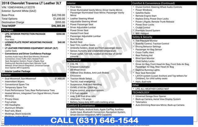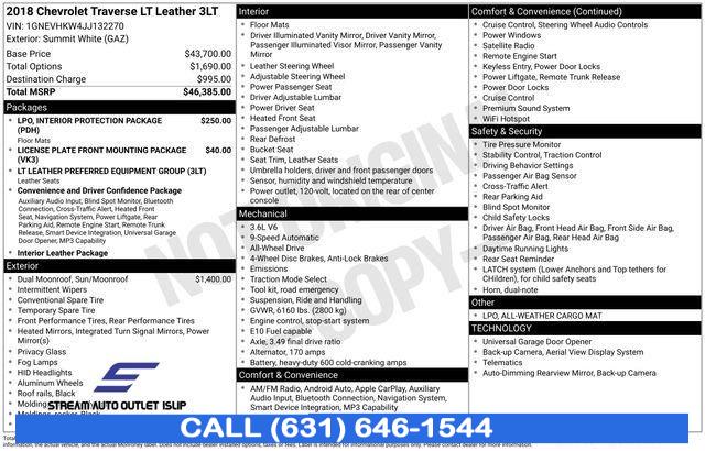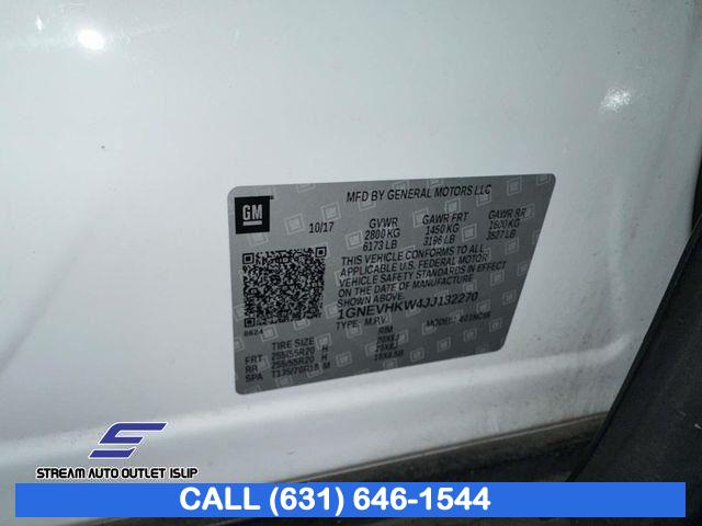 For more information on this 2018 Chevrolet Traverse, please call Stream Auto Outlet Islip at (631) 646-1544 or with the contact form on this page. This vehicle's vin number is 1GNEVHKW4JJ132270 and is recorded as being in stock at Stream Auto Outlet Islip at 2232 Sunrise Hwy in Islip. See all cars from this dealership.