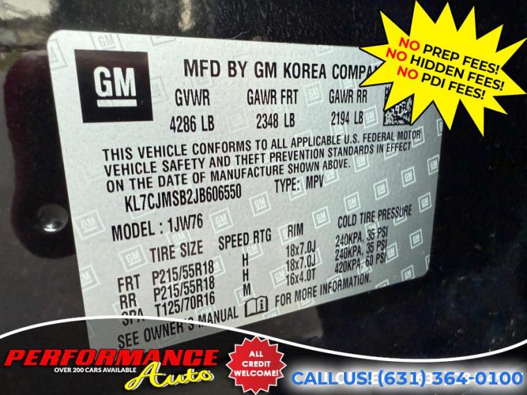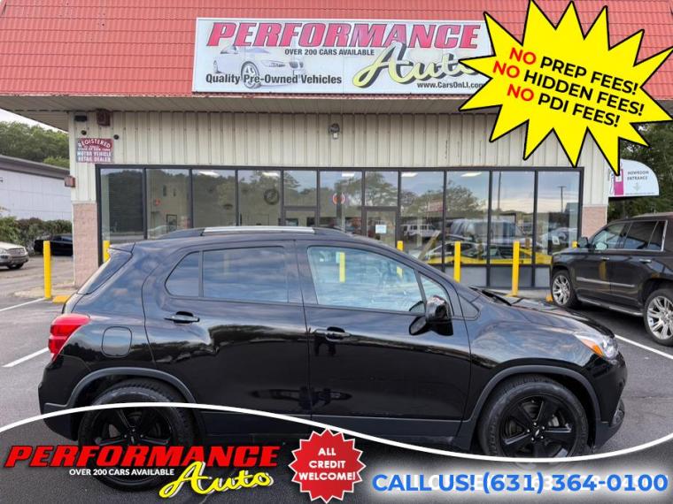 100% Clean Carfax! 2018 Chevrolet Trax Premier! Only 79K Miles! Midnight Edition! 18 Inch Wheel! Leather! Runs and Drives Great! Come in for a Test Drive! REMEMBER THE PERFORMANCE AUTO DIFFERENCE - NO PREP FEES! NO HIDDEN FEES! AND OUR PRICES DO NOT NEED TO REFLECT A TRADE OR DOWN PAYMENT! OUR PRICES ARE REAL! DON'T BE SCAMMED BY FINE PRINT! Government fees like Sales Tax, Inspection, DMV Fees and the State Limited $175 Doc processing fee are the ONLY additional fees allowed. Shame on any dealer who advertises a vehicle for a price that you CANNOT buy it for. Just be aware, if you cannot trust a dealer with their advertised price, should you trust them after that??? Shame on third party advertiser websites where consumers go to shop for cars and these sites allow this to happen and then honor these deceptive dealers with badges for "Great Deals" when after you add all their fees in, its NOT a great deal anymore. As per the AG in NY, It is against the law to advertise a vehicle for a price and then have hidden fees or down payments not included in the price. And now please beware of the another scam -- Dealers offering a "promotional price" only if you finance the vehicle with their lenders! This is also illegal and deceptive. You also do NOT need to finance to get our prices! A price should be exactly that - A PRICE! Performance Auto has been selling quality pre-owned automobiles since October 2000. 20-30% of our sales are REPEAT BUSINESS! You will feel no pressure when you enter our facility and meet one of our friendly sales representatives. All of the vehicles that we sell have to be NYS Inspected! As a Licensed New York State Dealer (Facility #7095633), we are required to provide you with a Clear Lien Free Title. As a Certified Plate program dealer, we also have the ability to issue new license plates or transfer your existing plates to your new vehicle. Please be aware of other "dealers" that sell vehicles using "out of state" licenses to avoid inspecting vehicles!