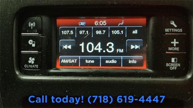• Blacktop Package, Connectivity Group, Popular Equipment Group, Quick Order Package 22B, Wheels: 17" x 6.5" Aluminum w/Blacktop Package, 1-Year SiriusXM Radio Service, 6 Speakers, AM/FM radio, Audio Jack Input for Mobile Devices, CD player, Radio data system, Radio: 4.3, Radio: 4.3S, Remote USB Port, Sirius Satellite Radio, Air Conditioning, Air Conditioning w/3-Zone Temperature Control, Front dual zone A/C, Rear Air Conditioning w/Heater, Rear window defroster, Power steering, Power windows, Remote keyless entry, Steering wheel mounted audio controls, Four wheel independent suspension, Normal Duty Suspension, Speed-sensing steering, Traction control, 4-Wheel Disc Brakes, ABS brakes, Anti-whiplash front head restraints, Dual front impact airbags, Dual front side impact airbags, Front anti-roll bar, Knee airbag, Low tire pressure warning, Occupant sensing airbag, Overhead airbag, Rear anti-roll bar, Brake assist, Electronic Stability Control, ParkView Rear Back-Up Camera, Black Headlamp Bezels, Delay-off headlights, Fully automatic headlights, Panic alarm, Speed control, Bumpers: body-color, Gloss Black Grille, Heated door mirrors, Power door mirrors, Roof rack: rails only, 4.3" Touch Screen Display, Driver door bin, Driver vanity mirror, Front reading lights, Illuminated entry, Interior Observation Mirror, Leather Wrapped Shift Knob, Leather Wrapped Steering Wheel, Outside temperature display, Overhead Console, Rear reading lights, Rear seat center armrest, Rear View Auto Dim Mirror w/Display, Sun Visors w/Illuminated Vanity Mirrors, Tachometer, Telescoping steering wheel, Tilt steering wheel, Trip computer, Uconnect Voice Command w/Bluetooth, 3rd row seats: bench, Front Bucket Seats, Front Center Armrest, Premium Cloth Low-Back Bucket Seats, Reclining 3rd row seat, Split folding rear seat, Passenger door bin, 17" Wheel Covers, 17" x 6.5" Steel Wheels, Rear window wiper, Speed-Sensitive Wipers, Variably intermittent wipers, 4.28 Axle Ratio