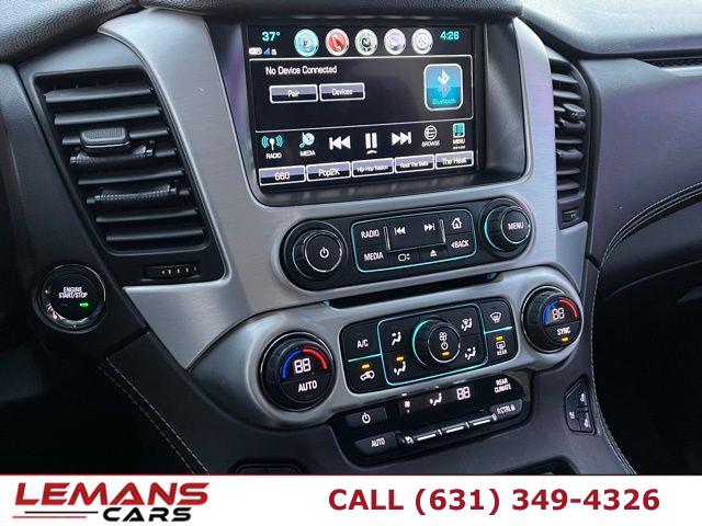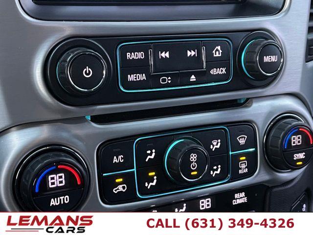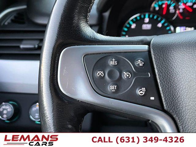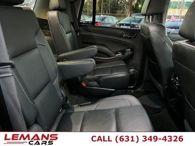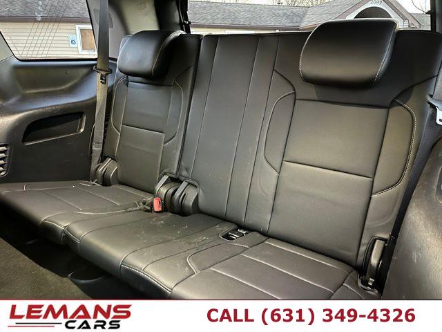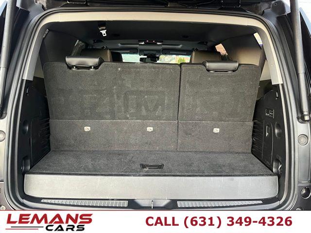 ABS, 4-Wheel Disc Brakes, 6-Speed A/T, 8 Cylinder Engine, A/C, A/T, 3rd Row Seat, Adjustable Pedals, Adjustable Steering Wheel, Security System, AM/FM Stereo, Transmission w/Dual Shift Mode, Automatic Headlights, Automatic Highbeams, Auxiliary Audio Input, Back-Up Camera, Blind Spot Monitor, Brake Assist, Bucket Seats, CD Player, Climate Control, Cooled Front Seat(s), Cross-Traffic Alert, Cruise Control, Daytime Running Lights, Driver Air Bag, Driver Adjustable Lumbar, Driver Restriction Features, Multi-Zone A/C, Auto-Dimming Rearview Mirror, Stability Control, Fog Lamps, Four Wheel Drive, Front Collision Mitigation, Front Collision Warning, Floor Mats, Conventional Spare Tire, Gasoline Fuel, Hands-Free Liftgate, HD Radio, Heated Front Seat(s), Heated Mirrors, Heated Rear Seat(s), Heated Steering Wheel, Integrated Turn Signal Mirrors, Intermittent Wipers, Keyless Entry, Keyless Start, Lane Departure Warning, Lane Keeping Assist, Leather Seats, Leather Steering Wheel, Locking/Limited Slip Differential, Luggage Rack, Mirror Memory, MP3 Capability, Telematics, Pass-Through Rear Seat, Passenger Air Bag, Passenger Air Bag Sensor, Passenger Adjustable Lumbar, Power Door Locks, Power Mirror(s), Power Driver Seat, Power Folding Mirrors, Power Liftgate, Power Passenger Seat, Power Steering, Power Windows, Premium Sound System, Privacy Glass, Rain Sensing Wipers, Rear A/C, Rear Defrost, Rear Head Air Bag, Rear Parking Aid, Remote Engine Start, Remote Trunk Release, Requires Subscription, Running Boards/Side Steps, Satellite Radio, Seat Memory, Front Side Air Bag, Front Head Air Bag, Smart Device Integration, Steering Wheel Audio Controls, Tire Pressure Monitor, Traction Control, Tow Hitch, Transmission Overdrive Switch, Universal Garage Door Opener, Variable Speed Intermittent Wipers, WiFi Hotspot, Bluetooth Connection, Active aero shutters, front, Assist steps, Black with chrome strip (Deleted when (RVQ) Black assist step kit, LPO or (VXH) Chrome assist step kit, LPO, is ordered.), Fog lamps with chrome surrounds, Glass, deep-tinted, Headlamps, halogen projector, Headlamps, IntelliBeam, automatic high beam on/off, Liftgate, power, hands free, Luggage rack side rails, roof-mounted, Black, Mirrors, outside heated power-adjustable, power-folding and driver-side auto-dimming, body-color with integrated turn signal indicators and ground illumination., Tire carrier, lockable outside spare winch-type mounted under frame at rear, Tire, spare P265/70R17 all-season, blackwall, Tires, P265/65R18 all-season, blackwall, Wheel, full-size spare 17" (43.2 cm) steel, Wheels, 18" x 8.5" (45.7 cm x 21.6 cm) bright machined aluminum, Windshield style, acoustic laminated glass, Windshield, solar-absorbing, Wiper, rear, Wipers, front rain-sensing, intermittent, Assist handles, 1st row passenger and 2nd row outboard seats, Cargo net, Climate control, tri-zone automatic, with individual climate settings for driver, right-front passenger and rear passengers, Console, floor with storage area, cup holders, Cruise control, electronic with set and resume speed (Not included when (Y66) Adaptive Cruise Control is ordered.), Defogger, rear-window electric, Door locks, power programmable with lockout protection, Driver Information Center, 4.2" diagonal multi-color, Floor covering, color-keyed carpeting, Floor mats, color-keyed carpeted first and second row, removable, Lighting, interior includes courtesy lighting with theater dimming, lighting for front and rear door handles, front and rear passenger footwells and door storage area, Lighting, interior with dome light driver- and passenger-side door switch with delayed entry feature, cargo lights, door handle or Remote Keyless Entry-activated illuminated entry and map lights in front and second seat positions, Mirror, inside rearview auto-dimming, Passive Entry System includes (AQQ) Remote Keyless Entry, Pedals, power-adjustable for accelerator and brake, Power outlet, 110-volt, 1.1 Amp, 150 Watt, Power outlets, 5 auxiliary, 12-volt includes outlets in the instrument panel, console, back of the console, 1 in 3rd row and 1 in the cargo area., Remote vehicle start includes extended range Remote Keyless Entry, Safety Alert Seat, Seats, front bucket with perforated leather-appointed heated and ventilated seat cushions, 12-way power driver and passenger seat includes 6-way power cushions, driver seat 2-position memory, 4-way power lumbar control and power recline, Seats, heated and ventilated driver and front passenger perforated leather-appointed, Seats, heated second row, outboard positions, Seats, second row 60/40 split-folding bench power release, Seats, third row 60/40 split-bench, power fold, Steering column, power tilt and telescopic, Steering wheel controls, mounted audio controls and cruise controls Driver Information Center controls, Steering wheel, heated, leather-wrapped, Theft-deterrent system, electrical, unauthorized entry, Universal Home Remote includes garage door opener, programmable, Windows, power all express down, front express up, 4-wheel drive, Alternator, 150 amps, Brakes, 4-wheel antilock, 4-wheel disc, VAC power with Brake Assist, Cooling, auxiliary external transmission oil cooler, heavy-duty air-to-oil, Cooling, external engine oil cooler, heavy-duty air-to-oil integral to driver side of radiator, Differential, heavy-duty locking rear, Engine, 5.3L EcoTec3 V8 with Active Fuel Management, Direct Injection and Variable Valve Timing, includes aluminum block construction (355 hp [265 kW] @ 5600 rpm, 383 lb-ft of torque [518 N-m] @ 4100 rpm), Exhaust, aluminized stainless-steel muffler and tailpipe, GVWR, 7300 lbs. (3311 kg) (Standard on 4WD models.), Keyless start, push button start, Powertrain grade braking, Rear axle, 3.08 ratio, Steering, power, Suspension Package, Premium Smooth Ride, Suspension, front coil-over-shock with stabilizer bar, Suspension, rear multi-link with coil springs, Tools, mechanical jack and wheel wrench stored in rear quarter trim, Tow/