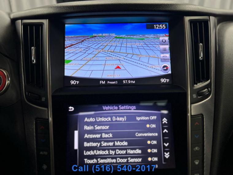 • Sunroof/Moonroof, Remote Start, Navigation System, Leather Seats, Heated Seats, Bluetooth, Backup Camera, Seating capacity: 5, Split front seats: Bucket front seats, Front head restraints: Height adjustable front seat head restraints, Front head restraint control: Manual front seat head restraint control, Rear seats fixed or removable: Fixed rear seats, Rear seats: Rear bench seat, Rear seat folding position: Fold forward rear seatback, Folding rear seats: 60-40 folding rear seats, Rear head restraints: Height adjustable rear seat head restraints, Rear head restraint control: Manual rear seat head restraint control, Rear head restraint control: 3 rear seat head restraints, Front seatback upholstery: Plastic front seatback upholstery, Door trim insert: Vinyl door trim insert, Headliner material: Cloth headliner material, Headliner coverage: Full headliner coverage, Floor covering: Full carpet floor covering, Floor mats: Carpet front and rear floor mats, Panel insert: Chrome instrument panel insert, Gearshifter material: Leather and metal-look gear shifter material, Door panel insert: Chrome door panel insert, Console insert material: Piano black console insert, Interior accents: Chrome and metal-look interior accents, Rear seatback upholstery: Carpet rear seatback upholstery, Climate control: Automatic climate control, Air conditioning: Yes, Dual-zone front climate control: Dual-zone front climate control, Rear console climate control ducts: Rear console climate control ducts, Steering wheel material: Leather steering wheel, Heated steering wheel: Heated steering wheel, Tinted windows: Light tinted windows, Armrests rear: Rear seat center armrest with trunk pass-thru, Armrests front center: Front seat center armrest, Sport steering wheel: Sport steering wheel, Floor coverage: Full floor coverage, Passenger doors rear left: Conventional left rear passenger door, Rear cargo door: Trunk, Heated door mirrors: Heated driver and passenger side door mirrors, Passenger doors rear right: Conventional right rear passenger door, Visor driver expandable coverage: Driver visor with expandable coverage, Visor driver mirror: Driver visor mirror, Visor illuminated driver mirror: Illuminated driver visor mirror, Visor passenger expandable coverage: Passenger visor with expandable coverage, Visor passenger mirror: Passenger visor mirror, Visor illuminated passenger mirror: Illuminated passenger visor mirror, Rearview mirror: Auto-dimming rear view mirror, Beverage holders: Front beverage holders, Rear seat direction: Front facing rear seat, Sport pedals: Sport style pedals, Shifter boot: Vinyl shifter boot, Floor console: Full floor console, Floor console storage: Covered floor console storage, Overhead console: Mini overhead console, Overhead console storage: Overhead console storage, Glove box: Illuminated locking glove box, Number of beverage holders: 6 beverage holders, Seatback storage pockets: 2 seatback storage pockets, Door bins front: Driver and passenger door bins, Cargo floor type: Carpet cargo area floor, Trunk lid trim: Carpet trunk lid trim, Cargo light: Cargo area light, Concealed cargo storage: Cargo area concealed storage, Cruise control: Cruise control with steering wheel mounted controls, Cargo access: Power cargo area access release, Fuel door: Power fuel door release, Driver foot rest: Driver foot rest, Accessory power: Retained accessory power, Garage door opener: HomeLink garage door opener, 12V power outlets: 2 12V power outlets, Door locks: Power door locks with 2 stage unlocking, Keyfob keyless entry: Keyfob keyless entry, All-in-one key: All-in-one remote fob and ignition key, Auto door locks: Auto-locking doors, Fob engine controls: Intelligent Key with hands-free access and push button start, Valet key: Valet key, Fuel door lock: Power fuel door lock, Keyfob cargo controls: Keyfob trunk control, Keyfob window controls: Keyfob window control, Keyfob remote start: Keyfob remote start, Tachometer: Tachometer, Engine/electric motor temperature gauge: Engine/electric motor temperature gauge, Clock: Digital clock, Compass: Compass, Temperature display: Exterior temperature display, Speedometer: Redundant digital speedometer, Folding door mirrors: Manual folding door mirrors, Battery charge warning: Battery charge warning, Low level warnings: Low level warning for fuel washer fluid and brake fluid, Key in vehicle warning: Key in vehicle warning, Bulb warning: Bulb failure warning, Door ajar warning: Rear cargo area ajar warning, Service interval warning: Service interval indicator, Oil pressure warning: Oil pressure warning, Trip computer: Trip computer, First-row windows: Power first-row windows, Second-row windows: Power second-row windows, One-touch down window: Front and rear one-touch down windows, One-touch up window: Front and rear one-touch up windows, Wipers: Variable intermittent front windshield wipers, Speed sensitive wipers: Speed sensitive wipers, Rear window defroster: Rear window defroster, Rear windshield: Fixed rear windshield, Beverage holders rear: Rear beverage holders, Driver information center: Driver information center, Day/Night rearview mirror: Day/Night rearview mirror, Front reading lights: Front reading lights, Rear reading lights: Rear reading lights, Variable panel light: Variable instrument panel light, Headlights on reminder: Headlights on reminder, Illuminated glove box: Illuminated glove box, Trip odometer: Trip odometer, Front windshield solar coating: Front windshield solar coating, Ignition type: Push-button, Basic warranty: 48 month/60 000 miles, Powertrain warranty: 72 month/70 000 miles, Corrosion perforation warranty: 84 month/unlimited, Roadside warranty: 48 month/unlimited, Electronic stability control: Electronic stability control system, Brake type: 4-wheel disc brakes, ABS Brakes: 4-wheel antilock (ABS) brakes, Brake assist system: Brake assist system, Headlight type: Projector beam headlights, Headlights: LED low and high beam headli