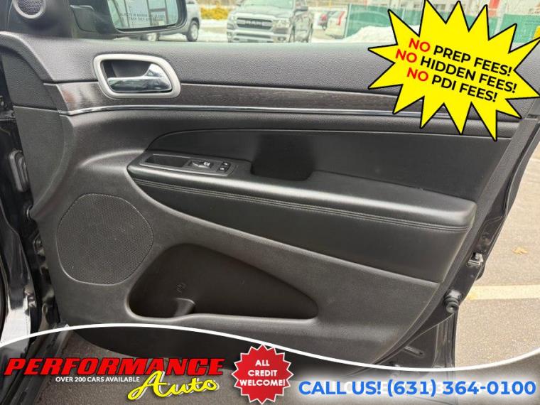 100% Clean Carfax! Wow Loaded with GREAT Options! Luxury Group II Package! Active Safety Group Package! BLind Spot and Cross Path Package! Pano Sunroof! Navigation! Heated And Cooled Front Seats! Heated Steering Wheel! Back up Camera! Automatic Parallel Parking! Adaptive Cruise with Stop! and Much More! Runs and Drives Great! Come in for a Test Drive! 2018 Jeep Grand Cherokee Limited 4x4! REMEMBER THE PERFORMANCE AUTO DIFFERENCE - NO PREP FEES! NO HIDDEN FEES! With apologies to all our customers, past and future: All of our competitors advertise cars using price structures that get their cars seen online, while no one sees ours. And so, after 25 years of business, we have to experiment with THEIR system. Therefore our advertised prices on third-party advertisers reflect a $2500 down payment or equivalent trade. It is NOT a HIDDEN FEE: we are completely up front and honest about why we have to try it. Our website clearly states the pricing on every vehicle. Third Party advertisers like Carfax, Cargurus and Autotrader etc. reward this price structure with better placement and badges. We have been asking third party advertisers for many years to give us a level playing field. We always succeed on a level playing field. Our competitors have downpayments between $2500-$9000 or even a % of price, then add hidden fees or require financing through them. Some dealers will not list a downpayment in their ads and you only find out when you go to see the vehicle. With us, financing is not required, but if you prefer to, we work with many banks to get you the best terms. We are sorry for any inconvenience, but pure pricing placed our vehicles at the bottom of search lists. We had no choice but to try advertising their way so that you can at least see our inventory, and hopefully we will do business. We have been selling quality cars with great reviews for 25 years. Our reputation is our strongest quality. We will do everything we can to satisfy you. It is no accident that 30% of our customers are repeat business.