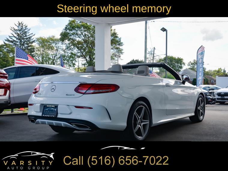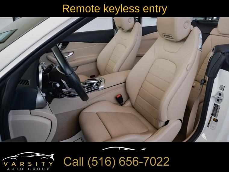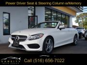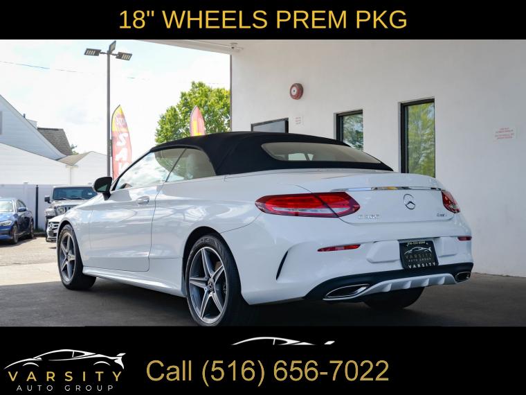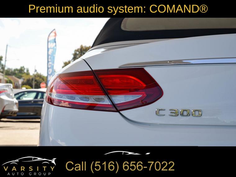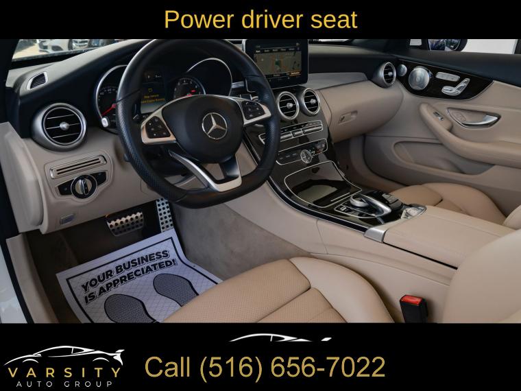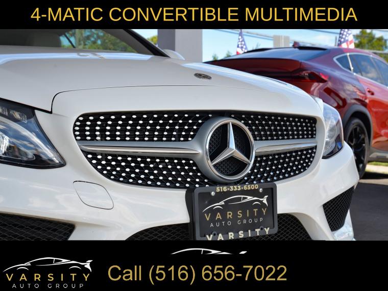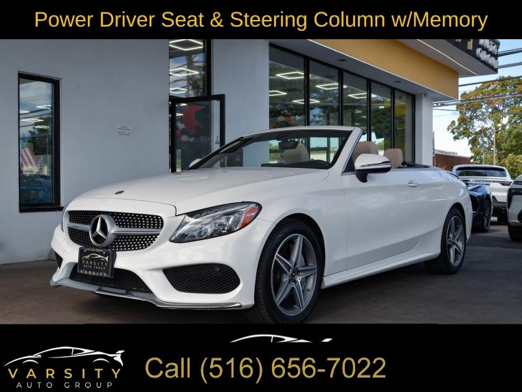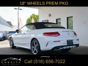 The Price you See, is the Price You Pay!!!, Mercedes-Benz C-Class C 300, Polar White, 2D Convertible, 18" WHEELS PREM PKG, 4-MATIC CONVERTIBLE MULTIMEDIA, Clean CARFAX, Low Miles, 4MATIC®, 18" AMG® 5-Spoke Alloy Wheels, 3-Position Passenger Seat Memory, 4-Way Lumbar Support, 4-Wheel Disc Brakes, 5 Speakers, ABS brakes, Air Conditioning, AM/FM radio, AMG® Body Styling, AMG® Line, AMG® Line Exterior, AMG® Line Interior, Anti-whiplash front head restraints, Auto tilt-away steering wheel, Auto-dimming door mirrors, Auto-dimming Rear-View mirror, Automatic temperature control, Black Fabric Headliner, Brake assist, Bumpers: body-color, CD player, Child-Seat-Sensing Airbag, COMAND® Navigation, COMAND® Single CD/DVD, Compass, Convertible roof lining, Convertible roof wind blocker, Delay-off headlights, Diamond Grille in Chrome, Driver door bin, Driver vanity mirror, Dual front impact airbags, Dual front side impact airbags, Electronic Stability Control, Emergency communication system: mbrace2, Exterior Parking Camera Rear, Four wheel independent suspension, Front anti-roll bar, Front Bucket Seats, Front Center Armrest, Front dual zone A/C, Front reading lights, Fully automatic headlights, Garage door transmitter: Homelink, Genuine wood console insert, Genuine wood door panel insert, Glass rear window, Head restraints memory, Heated door mirrors, Heated Front Seats, Heated front seats, Illuminated entry, Illuminated Star, Integrated roll-over protection, Knee airbag, Low tire pressure warning, Map Updates for 3 Years, MB-Tex Upholstery, Memory seat, Multimedia Package, Navigation System, Occupant sensing airbag, Outside temperature display, Overhead airbag, Overhead console, Panic alarm, Passenger door bin, Passenger vanity mirror, Power adjustable front head restraints, Power convertible roof, Power door mirrors, Power driver seat, Power Driver Seat & Steering Column w/Memory, Power passenger seat, Power steering, Power windows, Premium audio system: COMAND®, Radio data system, Radio: Audio 20 - Radio w/Bluetooth, Rain sensing wipers, Rear anti-roll bar, Rear Chrome Trim, Rear fog lights, Rear side impact airbag, Rear window defroster, Remote keyless entry, Security system, Single CD Player, Speed control, Speed-sensing steering, Split folding rear seat, Sport Suspension, Steering wheel memory, Steering wheel mounted audio controls, Tachometer, Telescoping steering wheel, Tilt steering wheel, Traction control, Trip computer, Turn signal indicator mirrors, Variably intermittent wipers, Weather band radio, Wheel Locking Bolts. Polar White 2018 Mercedes-Benz C-Class C 300 4MATIC® 4MATIC® 9-Speed Automatic 2.0L I4 Turbocharged Odometer is 23899 miles below market average! 22/29 City/Highway MPG