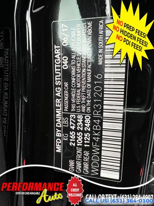 For more information on this 2018 Mercedes-Benz C-Class, please call Performance Auto Inc at (631) 364-0100 or with the contact form on this page. This vehicle's vin number is WDDWF4KB4JR312016 and is recorded as being in stock at Performance Auto Inc at 4475 Sunrise Highway in Bohemia. See all cars from this dealership.
