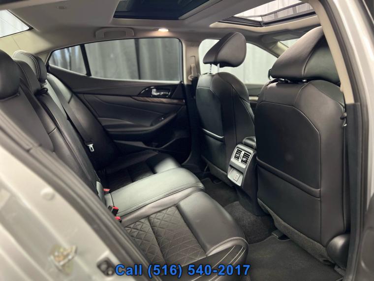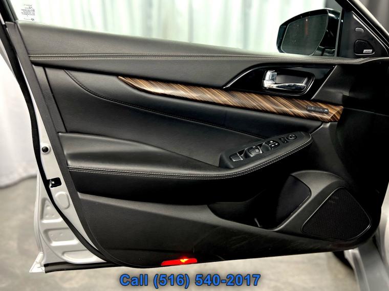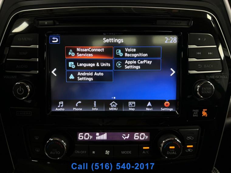 Sunroof/Moonroof, Remote Start, Navigation System, Leather Seats, Heated Seats, Bluetooth, Backup Camera, Moonroof / Sunroof: anti-trapping one-touch open/close, power panoramic, tilt/slide, Moonroof / Sunroof wind deflector: , Driver seat: cooled heated, Driver seat power adjustments: height lumbar, reclining, 8, Front headrests: adjustable 2, Front seat type: bucket, Passenger seat: cooled heated, Passenger seat power adjustments: reclining 4, Rear headrests: adjustable 3, Rear seat folding: split, Rear seat type: 60-40 split bench, Upholstery: leather-trimmed, ABS: 4-wheel, Braking assist: , Electronic brakeforce distribution: , Front brake diameter: 12.6, Front brake type: ventilated disc, Front brake width: 1.1, Power brakes: , Rear brake diameter: 12.1, Rear brake type: ventilated disc, Rear brake width: .63, Alternator: 150 amps, Battery: maintenance-free, Battery saver: , Daytime running lights: LED, Exterior entry lights: approach lamps, Front fog lights: , Headlights: LED auto delay off, auto on/off, wiper activated, Taillights: LED, Automatic emergency braking: front, Blind spot safety: sensor/alert, Camera system: surround view, Child safety door locks: , Child seat anchors: LATCH system, Cross traffic alert: rear, Crumple zones: front rear, Driver attention alert system: , Emergency interior trunk release: , Impact sensor: alert system, Parking sensors: front rear, Pre-collision warning system: audible warning visual warning, Rearview monitor: in dash, Airbag deactivation: occupant sensing passenger, Front airbags: dual, Side airbags: front, Side curtain airbags: front rear, Side mirror adjustments: manual folding power, reverse gear tilt, Side mirrors: driver side auto-dimming heated, integrated turn signals, Front wipers: rain sensing speed sensitive, variable intermittent, Power windows: remotely operated safety reverse, Window defogger: rear, Anti-theft system: alarm vehicle immobilizer, Power door locks: anti-lockout auto-locking, Steering ratio: 15.3, Turns lock-to-lock: 2.6, Emergency locking retractors: front rear, Front seatbelts: 3-point, Rear seatbelts: 3-point, Seatbelt force limiters: front, Seatbelt pretensioners: front, Seatbelt warning sensor: front, Axle ratio: 5.25, Drive mode selector: , Front shock type: twin-tube gas, Front spring type: coil, Front stabilizer bar: diameter 24 mm, Front strut tower bar: , Front struts: , Front suspension classification: independent, Front suspension type: lower control arms, Rear shock type: monotube, Rear spring type: coil, Rear stabilizer bar: diameter 27 mm, Rear suspension classification: independent, Rear suspension type: multi-link, Driver assistance app: roadside assistance, Electronic messaging assistance: voice operated with read function, Hands-free phone call integration: voice operated, Navigation data: real time traffic send destination to vehicle, Navigation system: DVD touch screen display, voice operated, Smart device app function: horn/light operation lock operation, maintenance status, vehicle location, Wireless data link: Bluetooth, Antenna type: diversity element, Auxiliary audio input: Bluetooth USB, iPod/iPhone, jack, Digital sound processing: , In-Dash CD: MP3 Playback single disc, Premium brand: Bose, Radio: AM/FM HD radio, touch screen display, voice operated, Radio data system: , Satellite radio: SiriusXM, Speed sensitive volume control: , Subwoofer: 1, Surround sound: , Total speakers: 10, Spare tire mount location: inside, Spare tire size: temporary, Spare wheel type: steel, Tire Pressure Monitoring System: , Tire type: all season, Wheels: aluminum alloy, Clock: , Compass: , Digital odometer: , External temperature display: , Fuel economy display: MPG range, Gauge: tachometer, Multi-function display: , Trip odometer: , Warnings and reminders: low fuel level low oil level, low washer fluid, Air filtration: , Front air conditioning: automatic climate control, Front air conditioning zones: dual, Rear vents: second row, Armrests: rear center with cupholders rear center with pass-thru, rear folding, Floor material: carpet, Heated steering wheel: , Interior accents: wood-tone, Shift knob trim: leather, Steering wheel trim: leather, Door handle color: chrome, Exhaust: dual tip, Exhaust tip color: chrome, Front bumper color: body-color, Grille color: black with chrome accents, Mirror color: black, Rear bumper color: body-color, Window trim: chrome, Adaptive cruise control: , Ambient lighting: , Assist handle: front rear, Cargo area light: , Center console: front console with armrest and storage, Cupholders: front rear, Memorized settings: 2 driver driver seat, side mirrors, steering wheel, Multi-function remote: panic alarm proximity entry system, trunk release, One-touch windows: 2, Overhead console: front, Power outlet(s): 12V front, Power steering: variable/speed-proportional, Power windows: lockout button, Push-button start: , Reading lights: front rear, Rearview mirror: auto-dimming, Remote engine start: , Steering wheel: power tilt and telescopic, Steering wheel mounted controls: audio cruise control, multi-function, phone, voice control, Storage: door pockets front seatback, sunglasses holder, Sunshade: power rear window, Universal remote transmitter: Homelink - garage door opener, Vanity mirrors: dual illuminating, Connected in-car apps: Google POIs Google search, SiriusXM Movie Listing, SiriusXM Stocks, SiriusXM Travel Link, SiriusXM Weather, Infotainment: NissanConnect, Infotainment screen size: 8 in., Smartphone integration: Android Auto Apple CarPlay, Stability control: , Traction control: