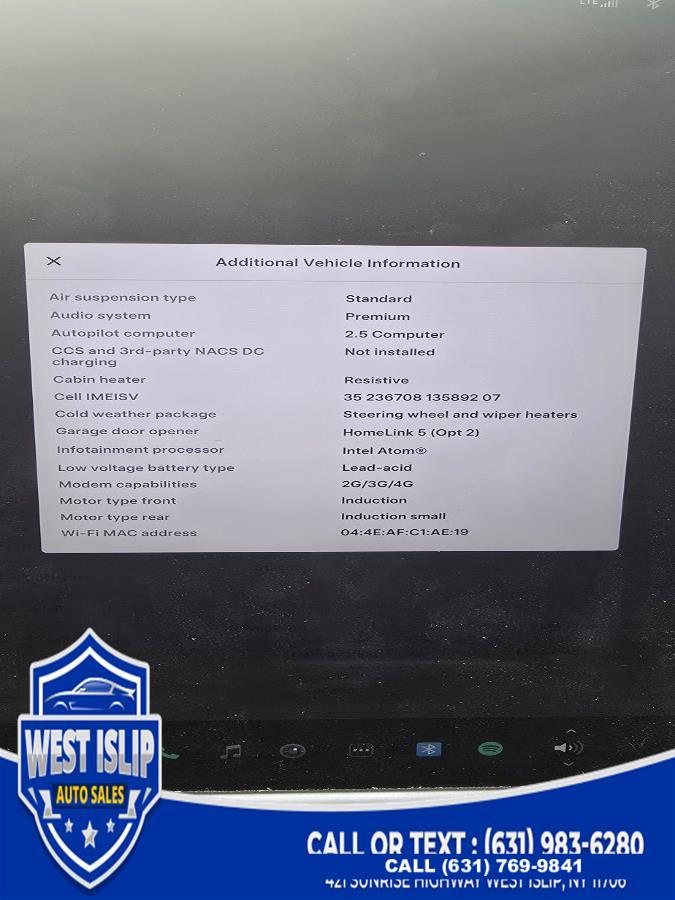 For more information on this 2018 Tesla Model S, please call West Islip Auto Sales at (631) 769-9841 or with the contact form on this page. This vehicle's vin number is 5YJSA1E23JF262572 and is recorded as being in stock at West Islip Auto Sales at 421 Sunrise Hwy in West Islip. See all cars from this dealership.