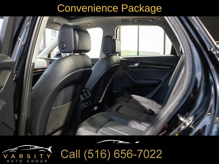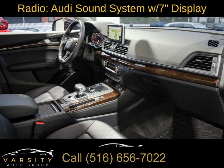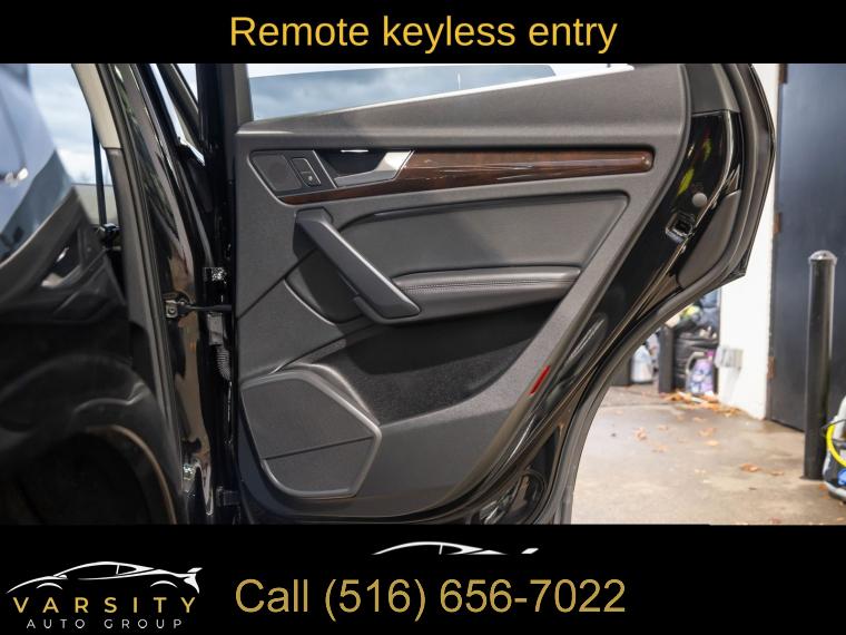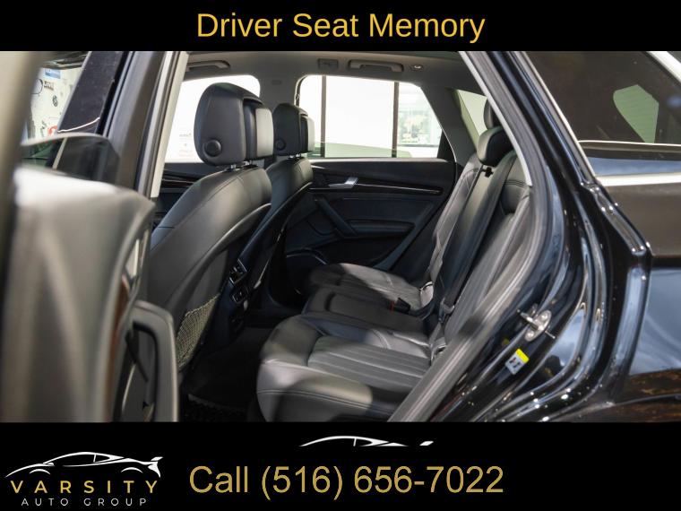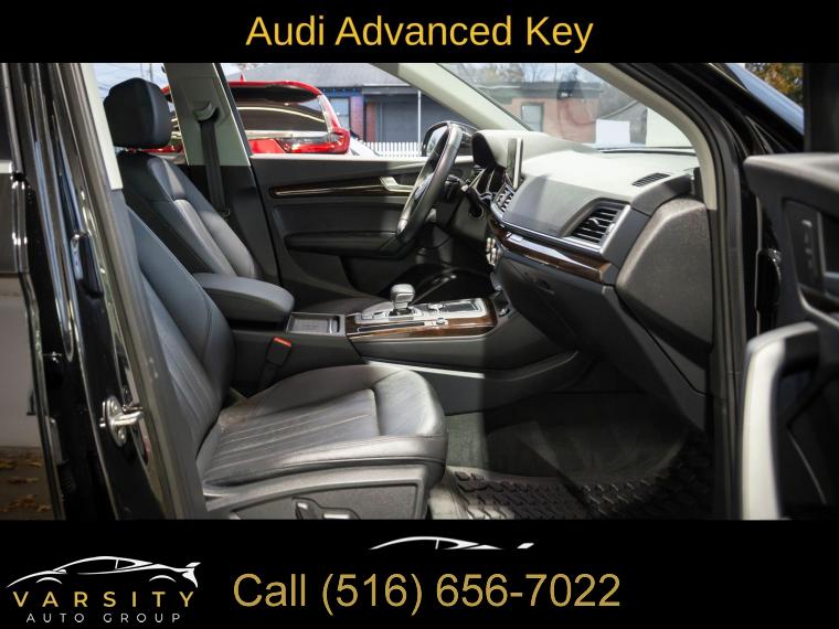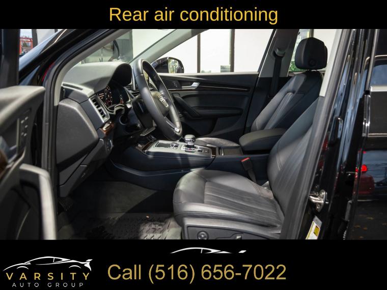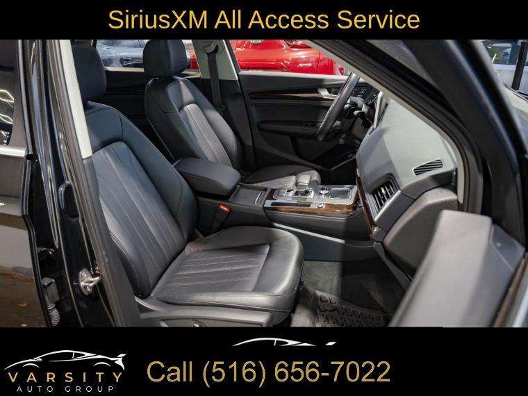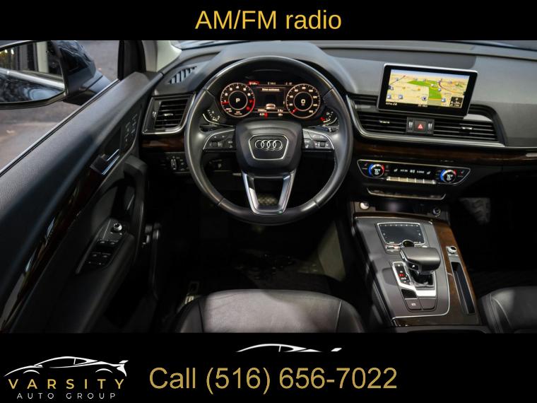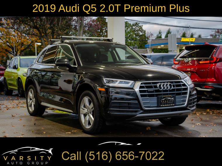 Cold Weather Package, Convenience Package, Premium Plus Package, Warm Weather Package, 10 Speakers, AM/FM radio, Bang & Olufsen Sound System w/3D Sound, Radio data system, Radio: Audi MMI Navigation Plus w/MMI Touch, Radio: Audi Sound System w/7" Display, SiriusXM All Access Service, Air Conditioning, Automatic temperature control, Front dual zone A/C, Rear air conditioning, Rear window defroster, Audi Advanced Key, Driver Seat Memory, Heated Rear Seats, Power driver seat, Power steering, Power windows, Remote keyless entry, Steering wheel mounted audio controls, Four wheel independent suspension, Speed-sensing steering, Traction control, 4-Wheel Disc Brakes, ABS brakes, Dual front impact airbags, Dual front side impact airbags, Emergency communication system: Audi connect CARE, Front anti-roll bar, Low tire pressure warning, Occupant sensing airbag, Overhead airbag, Rear anti-roll bar, Panoramic Sunroof, Power Liftgate, Audi Side Assist, Brake assist, Electronic Stability Control, Exterior Parking Camera Rear, Delay-off headlights, Front fog lights, High intensity discharge headlights: Xenon plus, LED Headlights, Rear fog lights, Panic alarm, Security system, Speed control, Audi Beam-Rings, Auto-Dimming Power Folding Mirrors, Bumpers: body-color, Heated door mirrors, Power door mirrors, Roof rack, Spoiler, Turn signal indicator mirrors, All-Weather Floor Mats, Audi Connect PRIME & PLUS, Audi Phone Box, Audi Pre Sense Rear, Audi smartphone interface (Apple CarPlay/Android Auto), Audi Virtual Cockpit, Auto-dimming Rear-View mirror, Compass, Driver door bin, Driver vanity mirror, Front reading lights, Front Sport Seats w/4-Way Power Lumbar, Garage door transmitter: HomeLink, Genuine wood console insert, Genuine wood dashboard insert, Genuine wood door panel insert, Heated 8-Way Power Front Bucket Seats, Heated Steering Wheel, Illuminated entry, Leather Shift Knob, Leather steering wheel, Leatherette Covered Center Console & Door Armrests, Outside temperature display, Overhead console, Parking System Plus (Front/Rear Acoustic Sensors), Passenger vanity mirror, Rear reading lights, Rear seat center armrest, Stainless Steel Door Sills, Tachometer, Telescoping steering wheel, Tilt steering wheel, Trip computer, USB Charge Ports for Rear Seats, Front Bucket Seats, Front Center Armrest, Front Seat Ventilation, Heated front seats, Leather Seating Surfaces, Power passenger seat, Split folding rear seat, Black Privacy Trunk Cover, Passenger door bin, Wheels: 19" 5-Arm-Wing Design, Manual Rear Side Window Sunshades, Rain sensing wipers, Rear window wiper, Speed-Sensitive Wipers, Variably intermittent wipers, 5.302 Axle Ratio, The Price you See, is the Price You Pay!!!, 2019 Audi Q5 2.0T Premium Plus, Black Metallic, Quattro, Mythos Black Metallic, Clean CARFAX, Low Miles